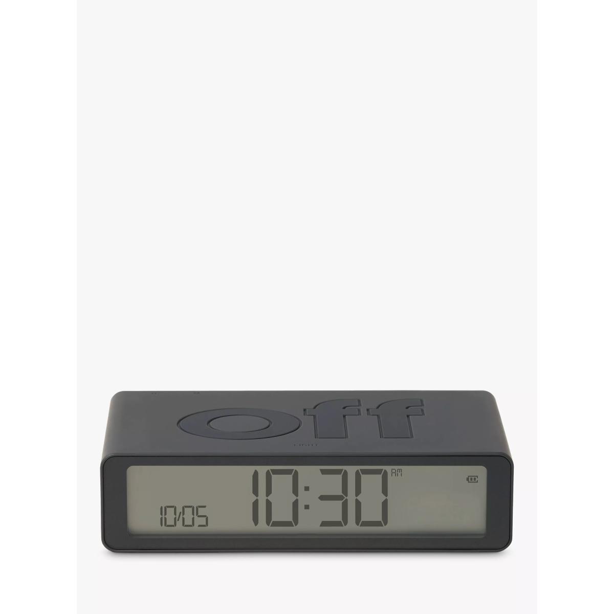 A compact design, this contemporary Flip alarm clock from Lexon is ideal for a bedside table and has a unique silencing function. Simply flip it over to turn the alarm off, so there's no more searching for the off switch in the dark. Keep the 'OFF' side facing up and your next wake-up call will be skipped. Flip it to 'ON' and your alarm will be set. The touch sensor snooze is easy to operate and it won't disturb your sleep since the clock doesn't illuminate at night unless you touch its top. Although a compact size, the front has an easy-to-read LCD display with time and date and brightness adjustment. Rechargeable via the included USB-C cable.