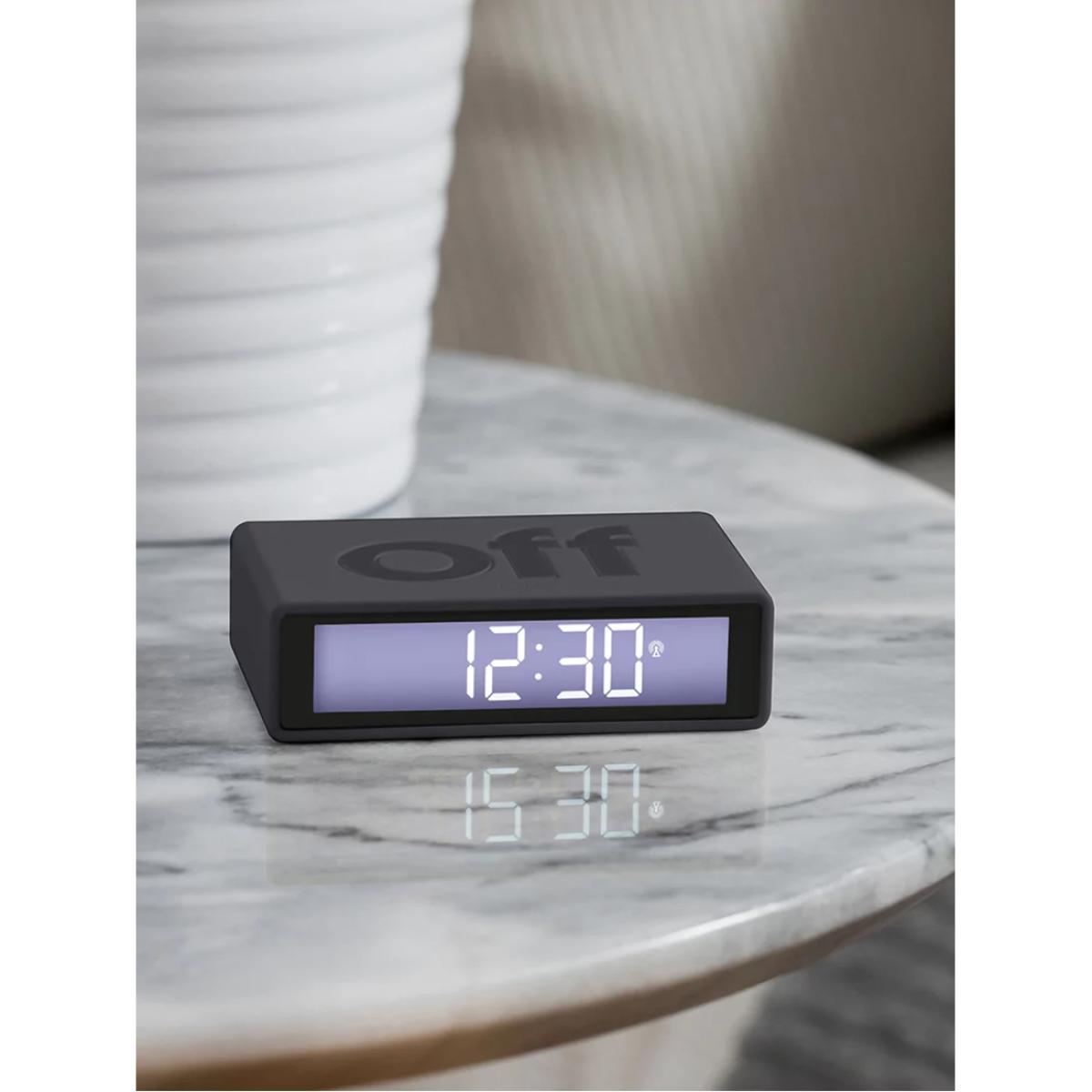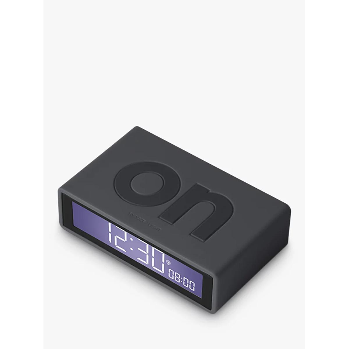 A compact design, this contemporary Flip+ alarm clock from Lexon is ideal for a bedside table and has a unique silencing function. Simply flip it over to turn the alarm off, so there's no more searching for the off switch in the dark. Keep the 'OFF' side facing up and your next wake-up call will be skipped. Flip it to 'ON' and your alarm will be set. The touch sensor snooze is easy to operate and it won't disturb your sleep since the clock doesn't illuminate at night unless you touch its top. Although a compact size, the front has an easy-to-read LCD display. Using radio-controlled technology, the clock sets up automatically, handily adjusts to summer and winter time changes on its own and keeps time accurately.