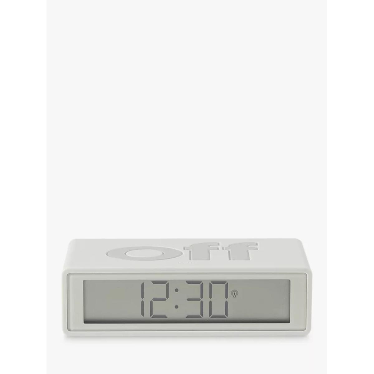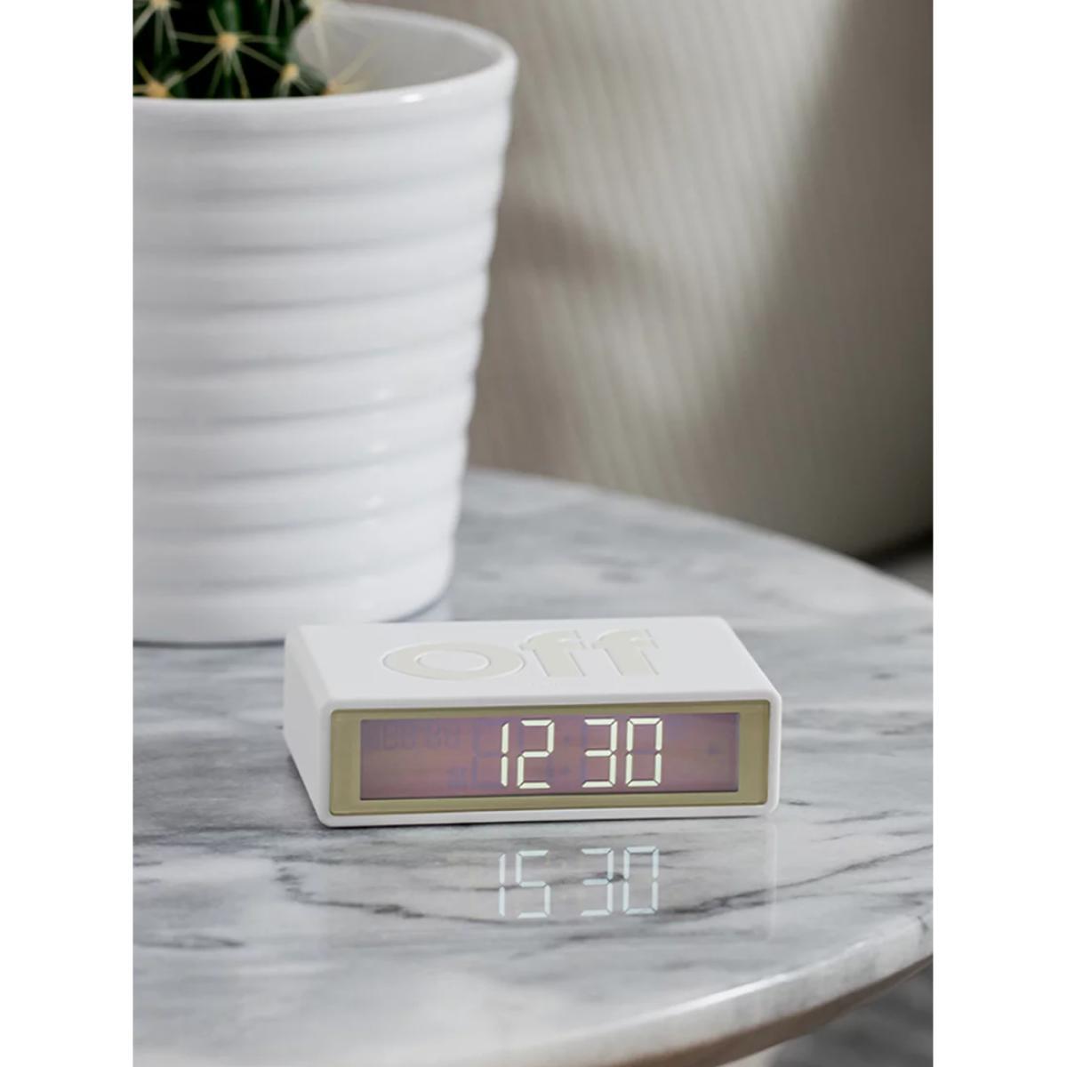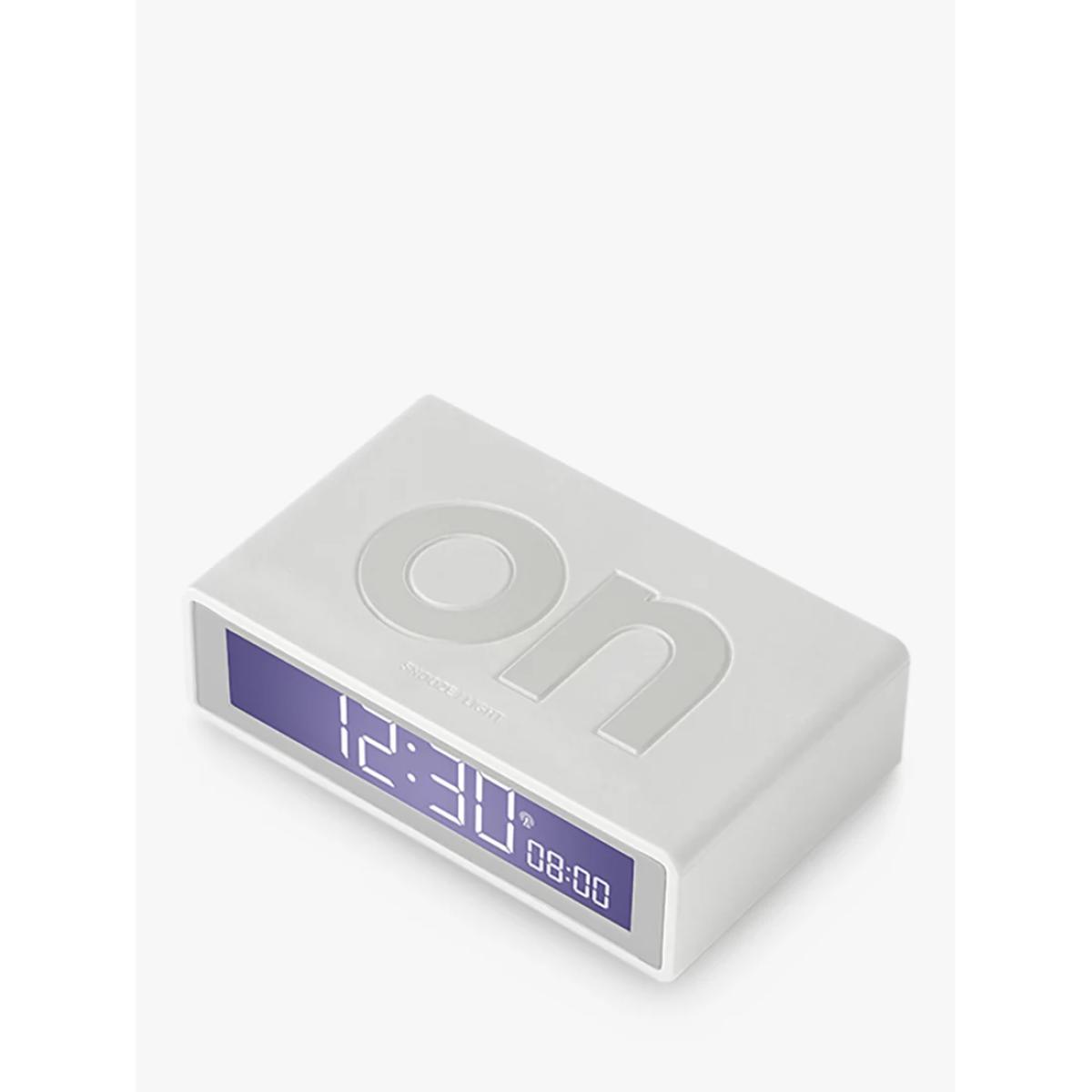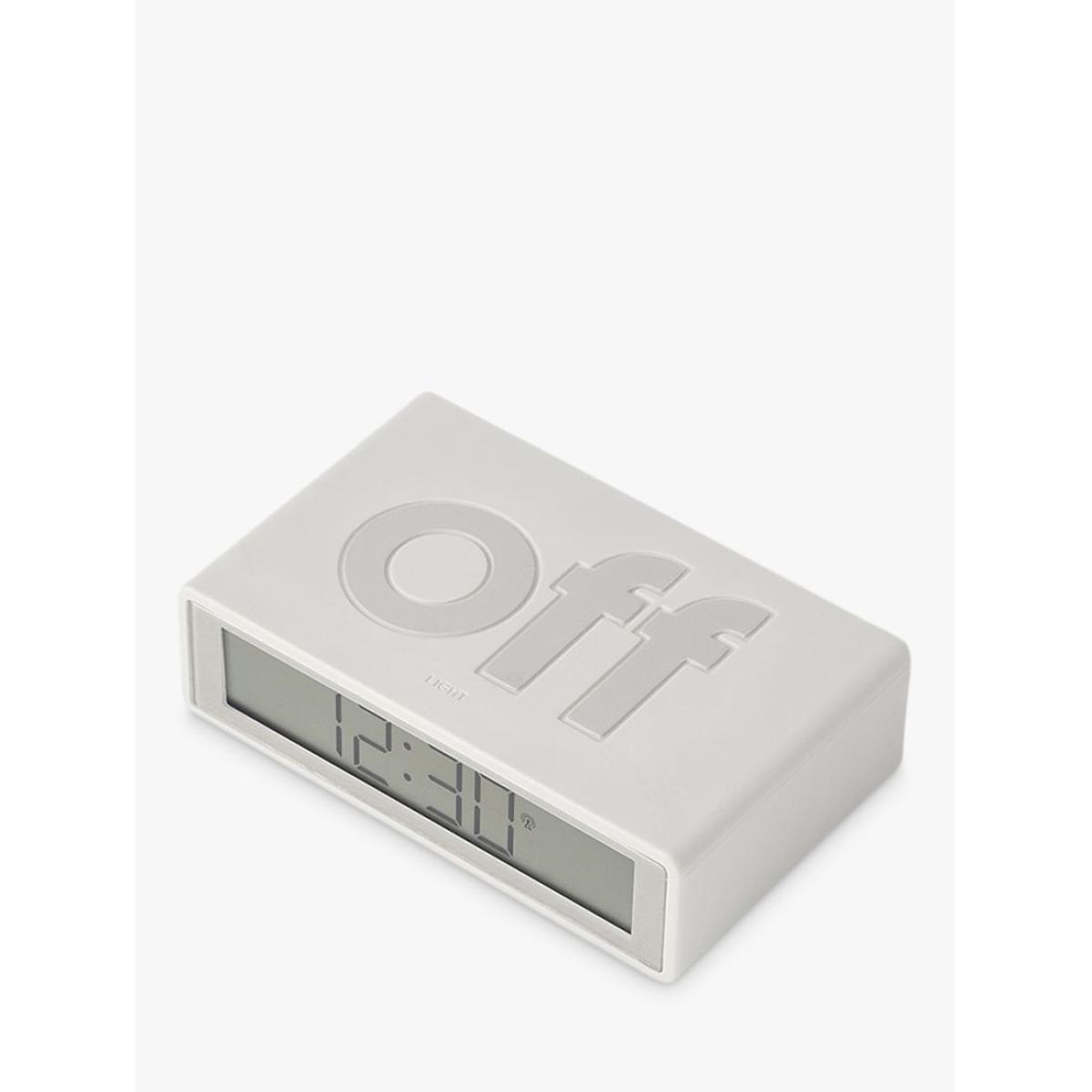 A compact design, this contemporary Flip+ alarm clock from Lexon is ideal for a bedside table and has a unique silencing function. Simply flip it over to turn the alarm off, so there's no more searching for the off switch in the dark. Keep the 'OFF' side facing up and your next wake-up call will be skipped. Flip it to 'ON' and your alarm will be set. The touch sensor snooze is easy to operate and it won't disturb your sleep since the clock doesn't illuminate at night unless you touch its top. Although a compact size, the front has an easy-to-read LCD display. Using radio-controlled technology, the clock sets up automatically, handily adjusts to summer and winter time changes on its own and keeps time accurately.