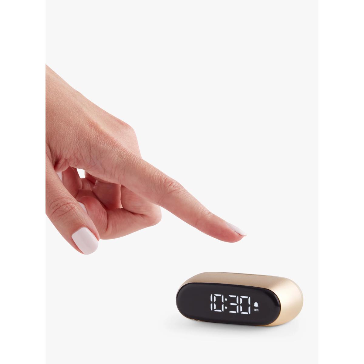 A super compact design, this contemporary Minut alarm clock from Lexon is ideal for a bedside table and for your travels. It has a full black LCD display, touch controls and a handy snooze function for a little extra shut-eye. The built-in rechargeable battery has a battery life of up to two months before it needs another charge. Charging time is four hours and the clock can be easily recharged via its USB Type-C port and included cable.