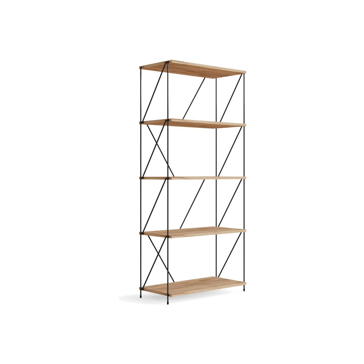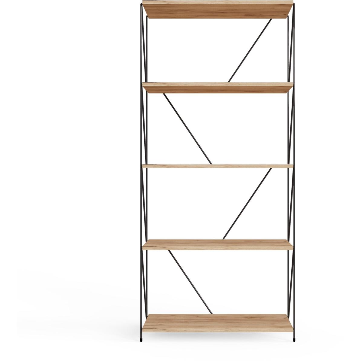 The Leyo Range brings together contemporary and rustic styling. This simplistic yet striking range is versatile and suitable for any interior. This 5-tier shelving display unit is perfect for contemporary, modern yet urban look for your home. With durable black metal frames, it is ideal for your books, trinket, plants, collectables whilst complementing any home office, hallway, living room or bedroom. Measures H136.5cm x W310cm x D61.4cm5 Shelves for storage. Great storage solution for any space. Other matching items available. Oak Finish Flat Packed for easy assembly at home Manufactured using particle board, each item comes flat packed for self-assembly at home. Part of the Leyo Living Range. Please note that due to lighting and different devices you might be using, the colour in the image may vary slightly for the actual colour of the product