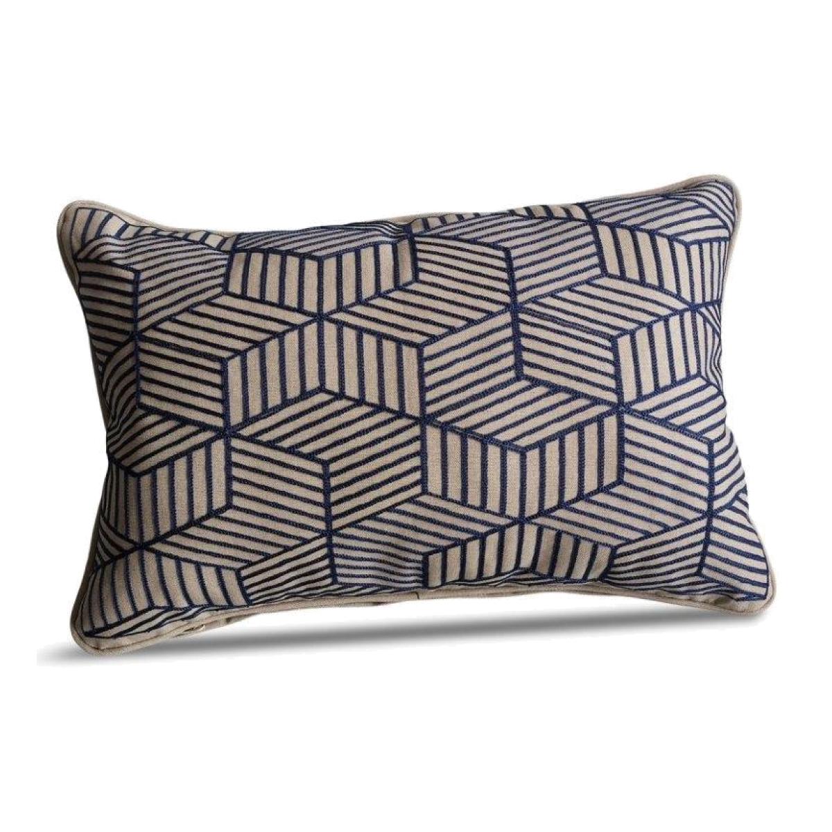 LG Outdoor Blue Striped Cubes 40x60cm Embroidered Scatter Cushion