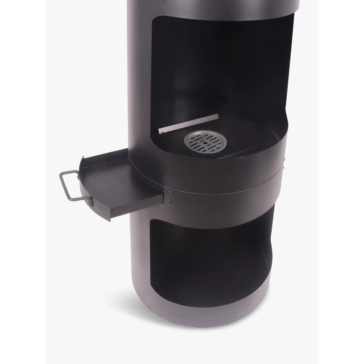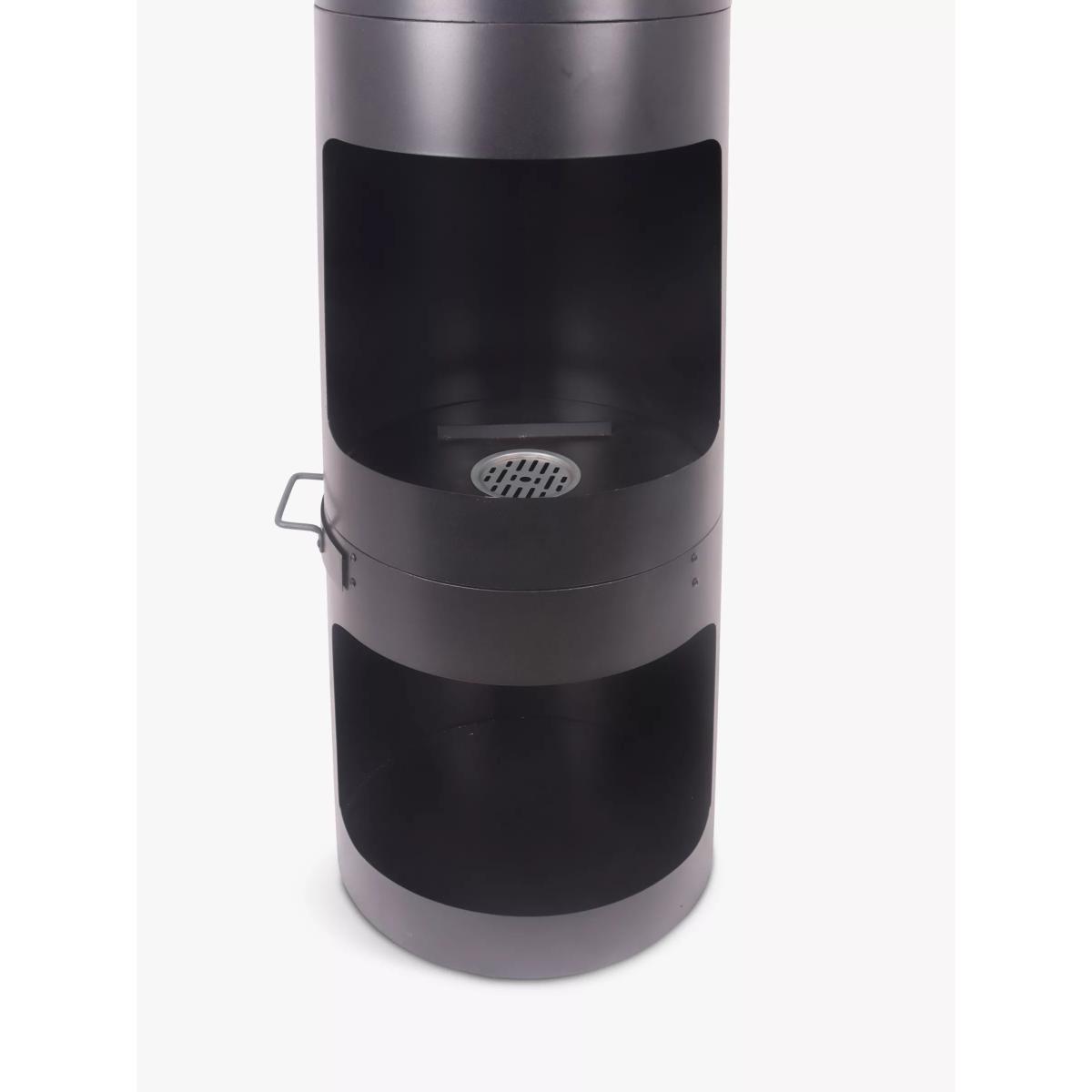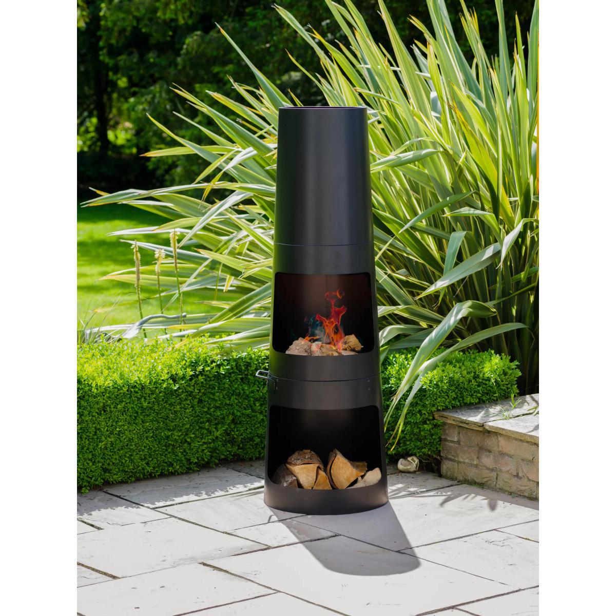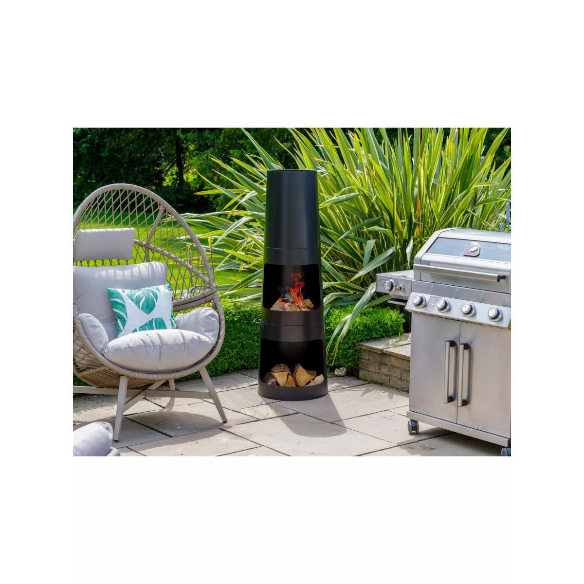 A contemporary cylindrical design in a powder-coated matt black finish, the Primo chiminea firepit from LG Outdoor comes with a cooking griddle and tripod so that you can barbecue food over the flames. A pull-out tray makes cleaning easy. Plus, there's room for log storage below. Made of durable steel, with this design smoke is directed upwards to keep the air cleaner for people seated in front of the fire. Want to see it first? You may want to see and get a feel for the product in one of our shops before ordering. We'll be able to tell you where the range you'd like to view is on display.