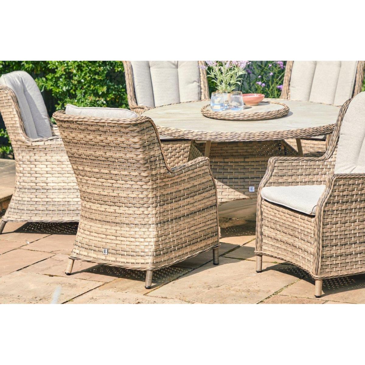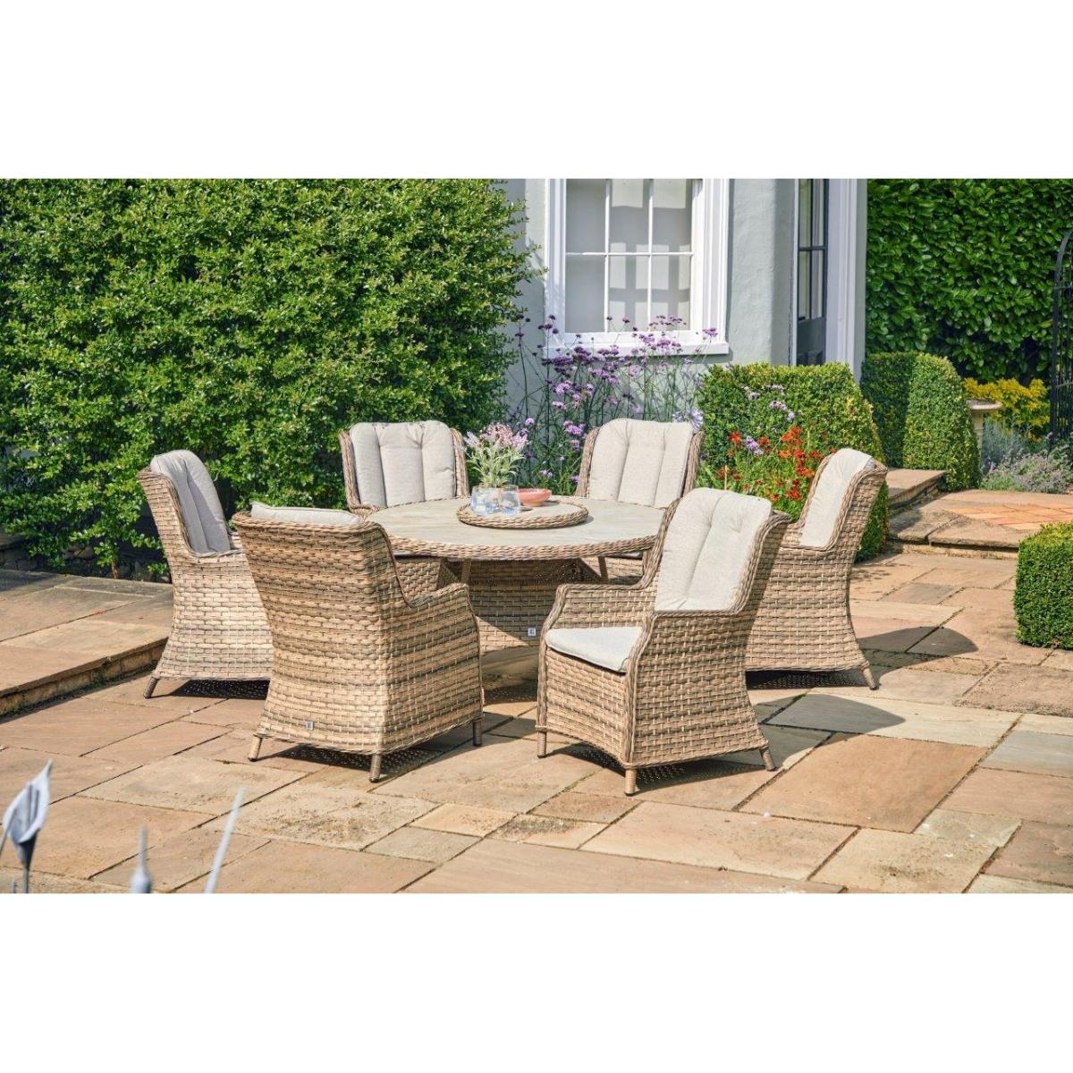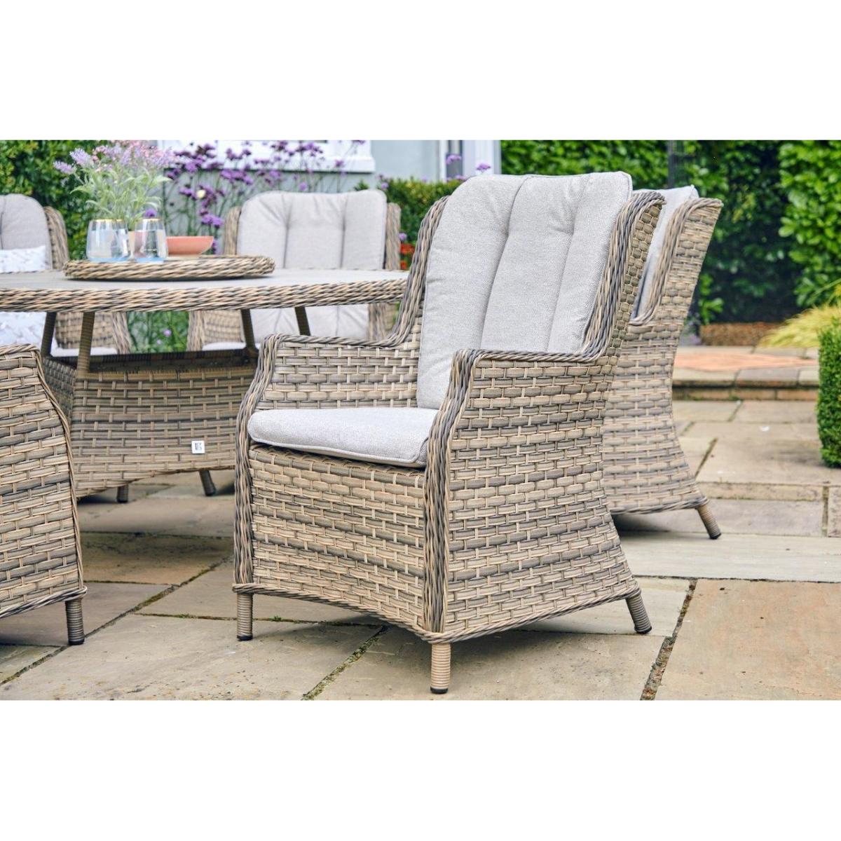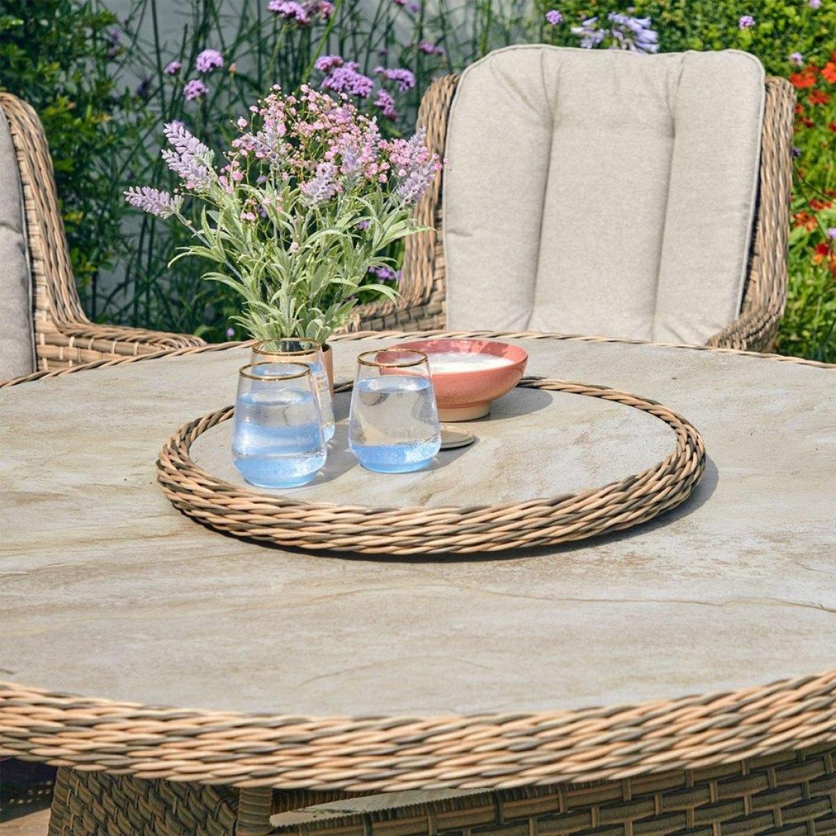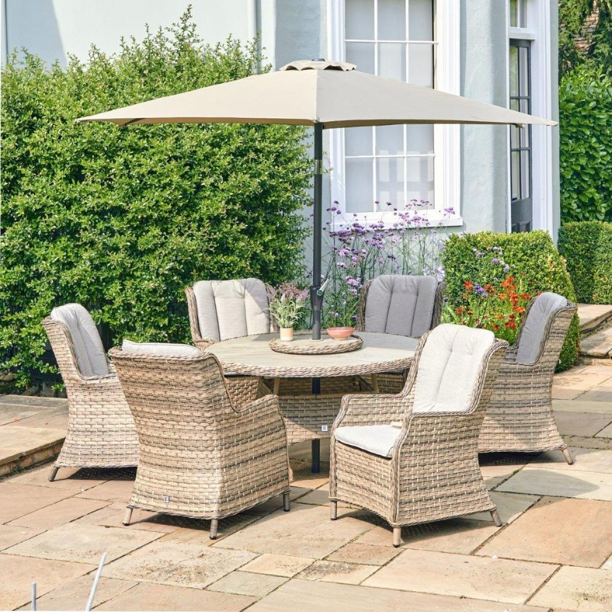 Introducing the Florence 6 Seat dining set from LG Outdoor, where craftsmanship and timeless design unite. Florence presents a unique multi-toned weave—its lightly textured flat weave subtly accented with twisted rod weave edges. The table tops feature stone-effect, ceramic-coated toughened safety glass for enduring aesthetics. With cushions designed for water repellence, quick drying, and UV resistance, Florence promises year-round comfort and resilience. Embracing a classic high-back design, Florence blends form and comfort seamlessly. Enhance your outdoor space with the Florence Range, where every detail reflects LG Outdoor's commitment to timeless beauty and impeccable quality. KEY FEATURES: Seats 6 people Unique multi-toned weave frames Stone-effect, ceramic-coated toughened safety glass tabletops Water-repellent, UV resistant, quick-drying cushions Chairs with a classic high-back design Includes Deluxe 3m Tilt & Crank parasol Includes Lazy Susan 3 Year Limited Warranty DIMENSIONS: Armchair:H 95cm x W 64cm x D 80cm Table:H 74cm x W 140cm x D 140cm Lazy Susan Diameter: 55cm Parasol Diameter: 3m Please note, all screens vary in colour reproduction and whilst every effort has been made to display the colour as accurately as possible it is for guidance only.
