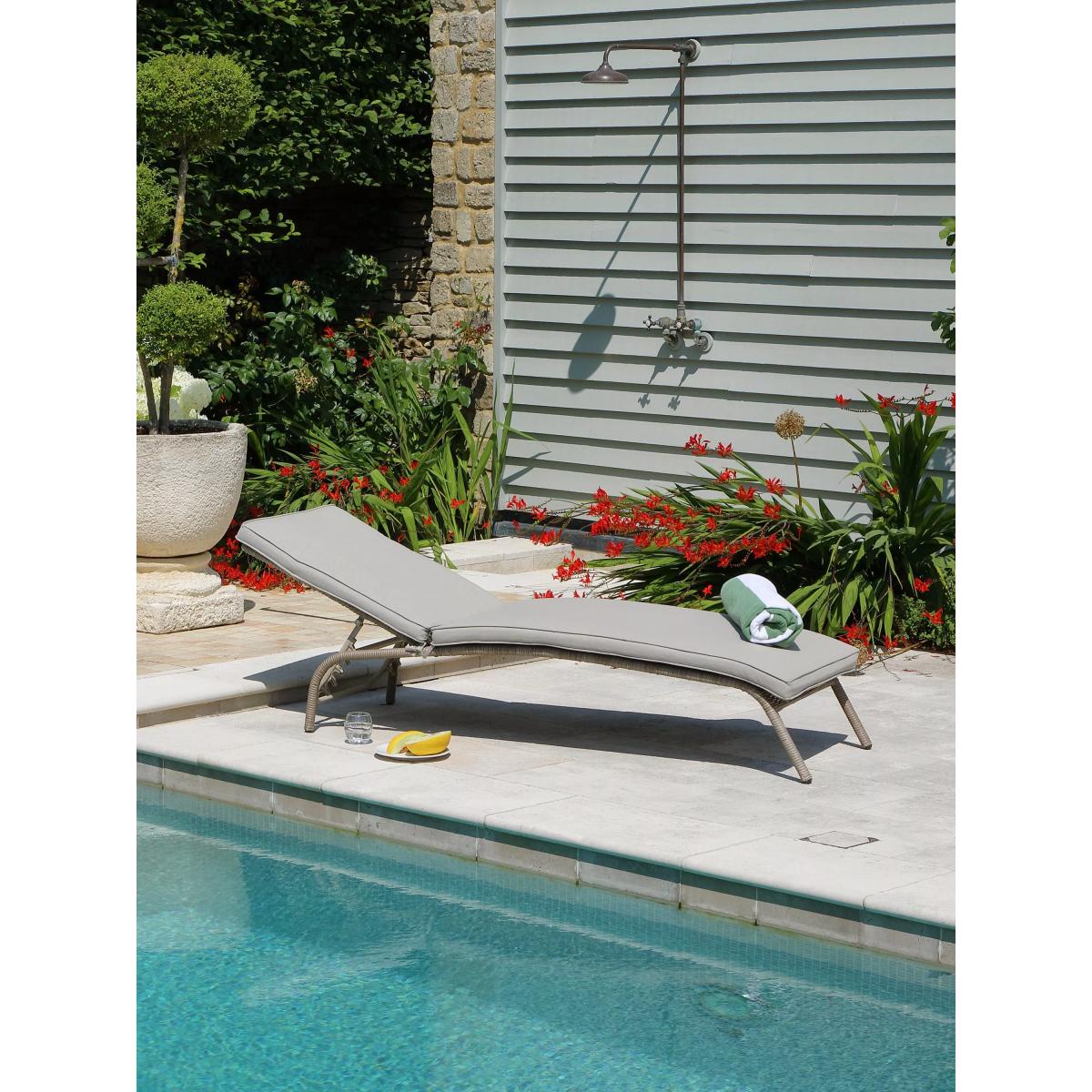 The Monaco range from LG Outdoor pairs robust aluminium frames with natural-looking, all-weather synthetic wicker. The furniture is lightweight, sturdy, weather-resistant and easy to maintain. Made of attractive Ever. Weave synthetic wicker, this sunlounger has season-proof Eden seat and backrest cushions for comfort. The cushions are water-repellent during light rainfall, fast-drying and are UV-resistant to prevent colour fading. The cushions have bull-nosed curved edges for added comfort and removable zip-up covers for easy cleaning. Store the cushions during persistent and heavy rain and over winter months. Key features: Multiple reclining position sunlounger EverWeave synthetic wicker on sturdy aluminium frame Season-proof Eden seat and backrest cushions for comfort