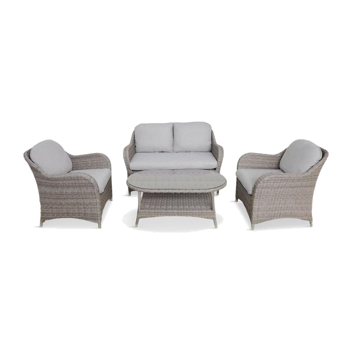 Sophisticated garden furniture, the Monte Carlo collection from LG Outdoor offers lasting comfort. Crafted in classic 2-ply Ever. Weave on aluminium frames, the range is completed with upholstered seat and backrest cushions finished with piped edges. This four-seater lounge set includes an oval garden coffee table with a toughened glass top. Key features: Two garden lounge chairs and a two-seater sofa in 2-ply Ever. Weave polyrattan Oval garden coffee table with toughened glass top Lightweight yet robust aluminium frames Upholstered seat and backrest cushions with piped edges Easy to maintain