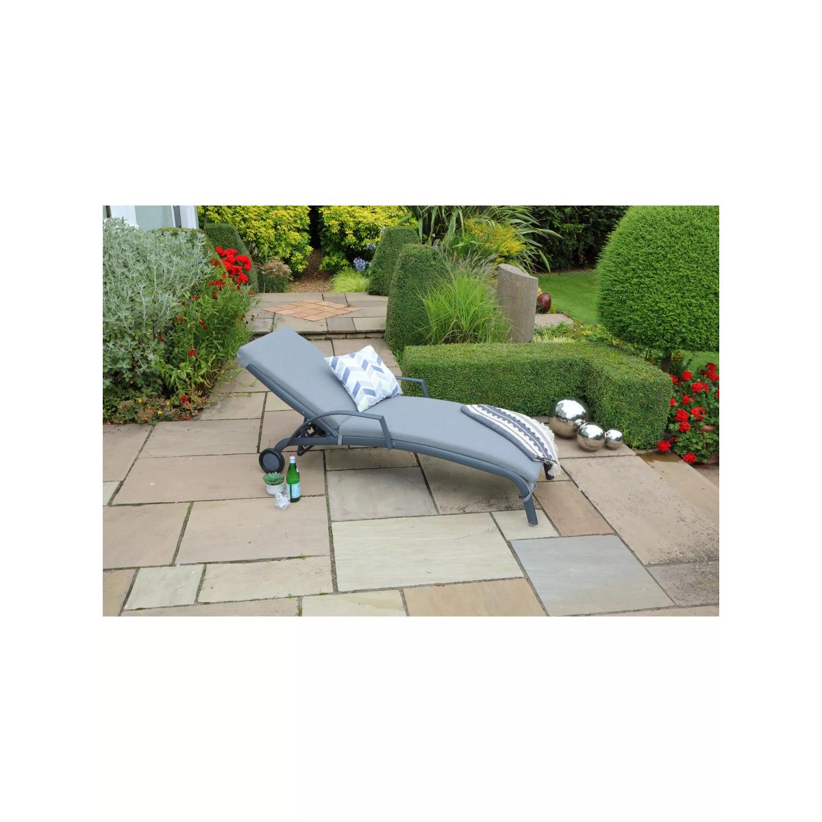 The Turin range from LG Outdoor is contemporary, stylish and lightweight. Easy to adjust, this sunlounger has multiple reclining postions and it's equally easy to move to the right spot in the garden thanks to its transporter wheels. The graphite grey anti-rust frame is made of powder-coated aluminium so the sunlounger can be left outdoors. It's covered in all-weather fabric for maximum comfort and ease of maintenance. Season-proof Eden cushions in the range enhance your comfort and are water-repellent during light rainfall, fast-drying and are UV-resistant to prevent colour fading. They're made with a superior 'comfort filling' and a natural-feel fabric. The cushions are stain-resistant and need only simple sponge-cleaning to tackle spills. Store the cushions during persistent and heavy rain and over winter months. Key features: Adjustable multi-position reclining sunlounger Stylish contemporary design Sturdy powder-coated aluminium frame with all-weather fabric support Season-proof Eden cushions Transporter wheels Want to see it first? You may want to see and get a feel for the product in one of our shops before ordering. We'll be able to tell you where the range you'd like to view is on display.