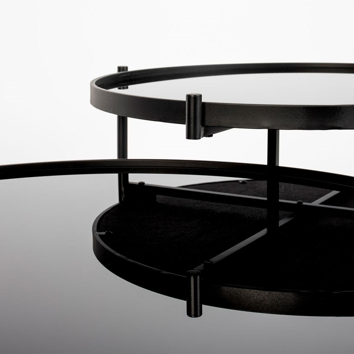 When one table top just isn't enough - featuring two circular surfaces, use the Li Coffee Table for drinks and decor. Designed to look like traditional nesting tables, but with a contemporary twist - the overlaying tables and reflective finish create dimension in your chosen space. Finished in a bold black colourway, the Li accent table would suit a number of interior styles. Dress yours with houseplants, candles and a selection of reads you and guests can flick through. Whats more, the Li Coffee Table is suitable for indoor and outdoor use, so you're not limited to where you position yours!.