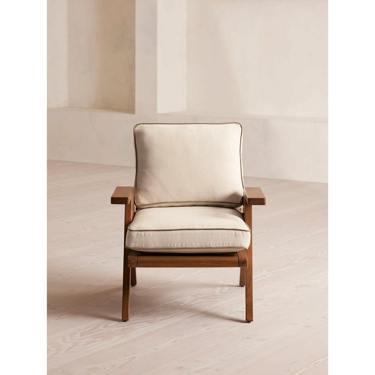 The Lia low dining chair has a mid-century aesthetic, which can be seen in many of our Houses, including a dark stain, solid teak frame and textured upholstery. Inspired by White City House, this laid-back style features removable cushions in Mariaflora's 'Stuoia' fabric, a neutral textured weave, complemented with an olive trim. Group together with our Breno bistro table in the same finish for a relaxed outdoor dining set-up. Outdoor dining chair Low, laid-back shape Solid teak frame Dark stain finish Removable cushions Upholstered in Mariaflora's 'Stuoia' fabric Pair with our Breno bistro table Inspired by White City House
