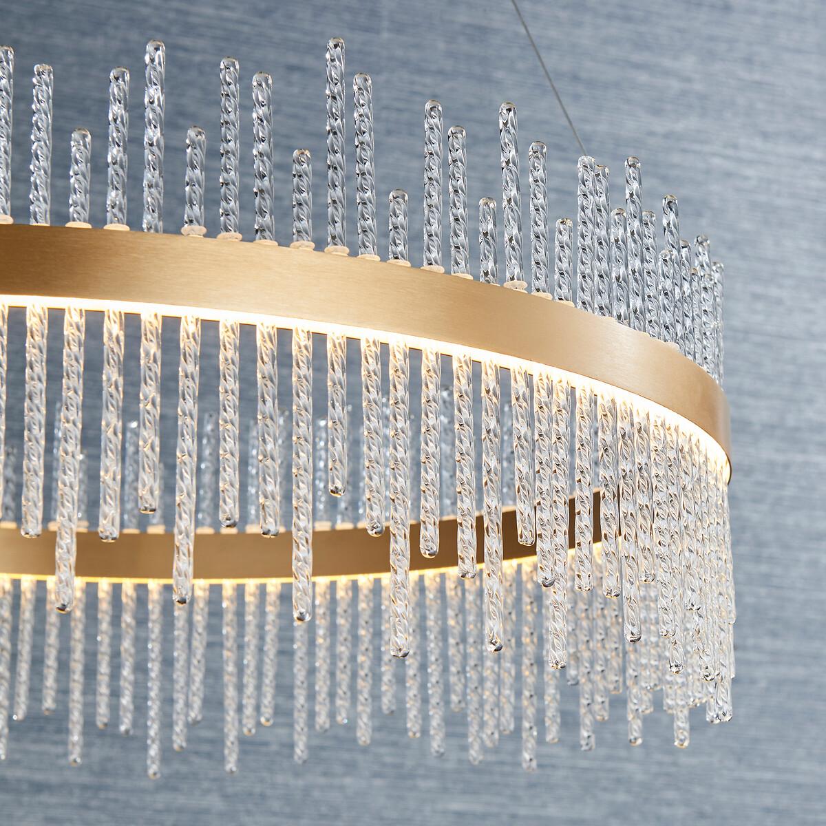 A elegant and stunning piece in indoor lighting, this chandelier style pendant light features a golden hoop and glass decorations with a dimmable setting and adjustable height fitting. Product Dimensions: 78x 78x 14cm. Weight: 3.5kg. Steel / aluminium Alloy / Glass This product will be dispatched by one of our trusted suppliers. You’ll be contacted by their selected courier about your delivery. GALLE01