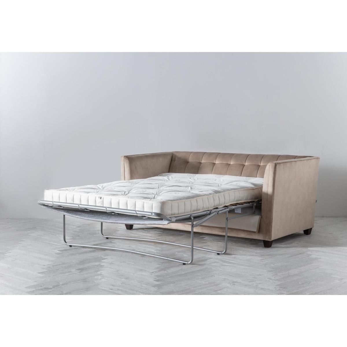 Make room for the Lia, a three-seater sofa bed that is all about contemporary luxury. Made from solid hardwood, the Lia teams a modern design with high arms with lavish button-tufted details for timeless elegance. Complete with a comfortable, cushioned seat, this standalone piece is perfect for styling up any room. On top of that, the Lia is extremely practical, as it transforms into a heavenly bed for your guests in a matter of seconds thanks to its inner mechanism with sprung mattress. Add the Lia to spare rooms, home offices or why not? Use it as the stylish focal point of a contemporary living room - whatever your choice, you won't be able to take your eyes off it.