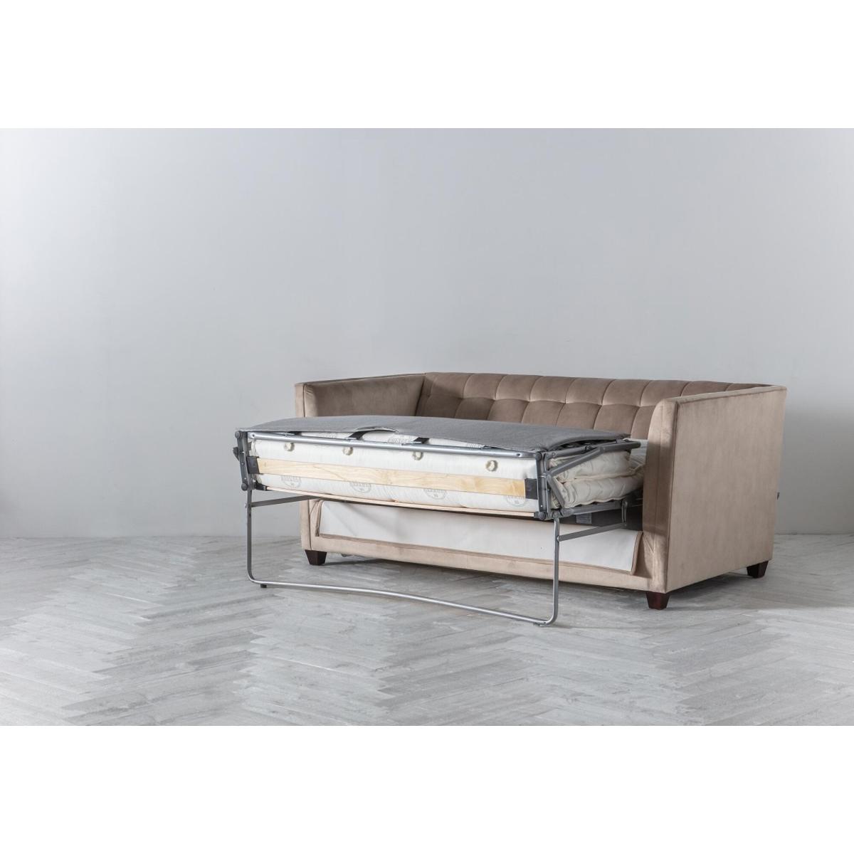Make room for the Lia, a three-seater sofa bed that is all about contemporary luxury. Made from solid hardwood, the Lia teams a modern design with high arms with lavish button-tufted details for timeless elegance. Complete with a comfortable, cushioned seat, this standalone piece is perfect for styling up any room. On top of that, the Lia is extremely practical, as it transforms into a heavenly bed for your guests in a matter of seconds thanks to its inner mechanism with sprung mattress. Add the Lia to spare rooms, home offices or why not? Use it as the stylish focal point of a contemporary living room - whatever your choice, you won't be able to take your eyes off it.