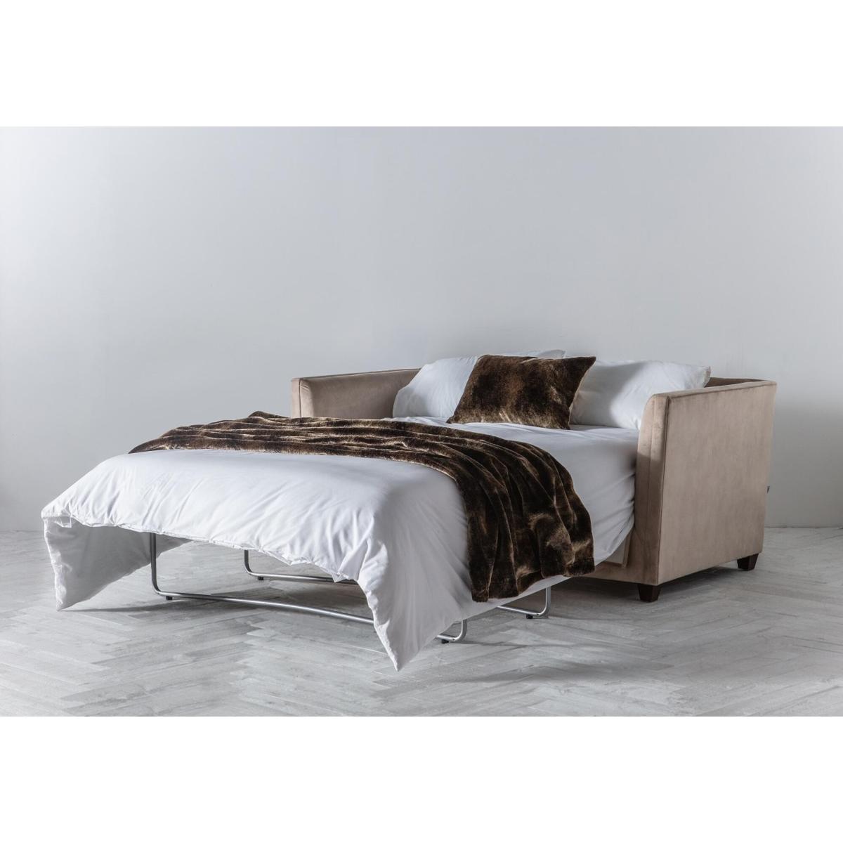 Make room for the Lia, a three-seater sofa bed that is all about contemporary luxury. Made from solid hardwood, the Lia teams a modern design with high arms with lavish button-tufted details for timeless elegance. Complete with a comfortable, cushioned seat, this standalone piece is perfect for styling up any room. On top of that, the Lia is extremely practical, as it transforms into a heavenly bed for your guests in a matter of seconds thanks to its inner mechanism with sprung mattress. Add the Lia to spare rooms, home offices or why not? Use it as the stylish focal point of a contemporary living room - whatever your choice, you won't be able to take your eyes off it.