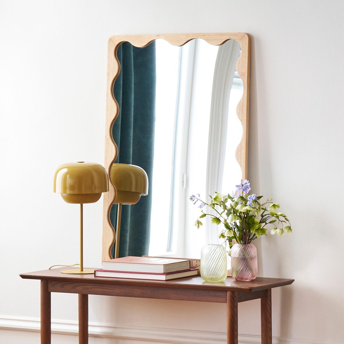 I really like this wavy-edged mirror for its versatile, understated charm. The rubberwood veneer adds a natural, warm tone that works especially well in both Scandi and modern interiors, or even in more coastal schemes where light, natural materials are key. It’s a practical piece that can be styled simply above a console or bathroom vanity, or used as a statement piece in a bedroom or hallway. To enhance its look, consider pairing it with neutral textiles or layered with other natural textured accessories-this keeps the focus on its unique border while creating a cohesive, inviting space. Its clean yet distinctive shape makes it easy to incorporate into various schemes without overwhelming other design elements.