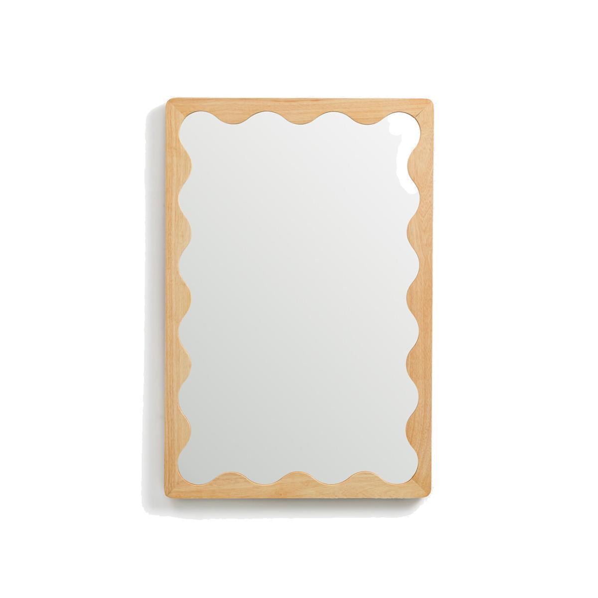 Placed on a piece of furniture or on the floor, or hung on the wall: the Lia mirror dresses up a room with its beautiful dimensions. Its wavy-edged rubberwood veneer frame brings softness and serenity to your home. Product Details • Rubberwood veneer • Hand-crafted, each piece is unique: colours and dimensions may vary from product to product • Freestanding or for hanging (screws and wall plugs not supplied)Dimensions • Length: 91cm • Width: 61cm • Height: 2cm/1"