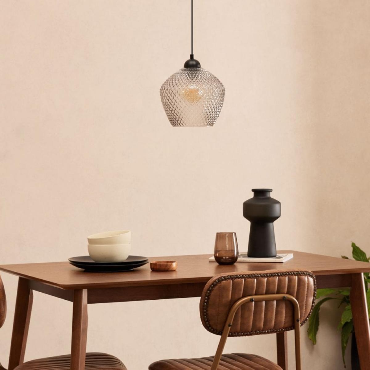 I love this pendant light for its versatile colour palette of smokey grey and black, which makes it a stylish yet subtle statement piece. It works especially well in modern, industrial, or pared-back interiors, adding a touch of texture without overwhelming the space. Practical tips include hanging it above a dining table or in a kitchen island for focused task lighting, and pairing it with exposed filament bulbs for a warm glow. Its textured glass shade also lends a contemporary edge to both minimalist and eclectic interiors, making it a flexible choice that can elevate various styles with ease.