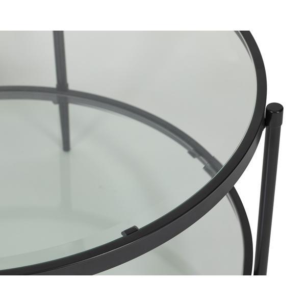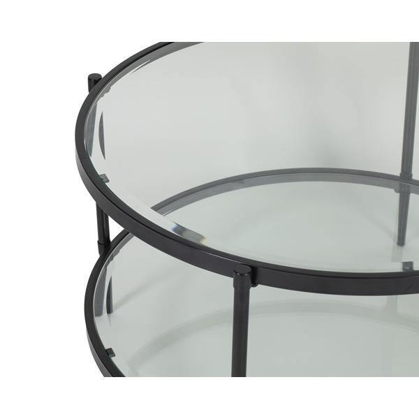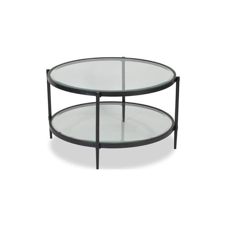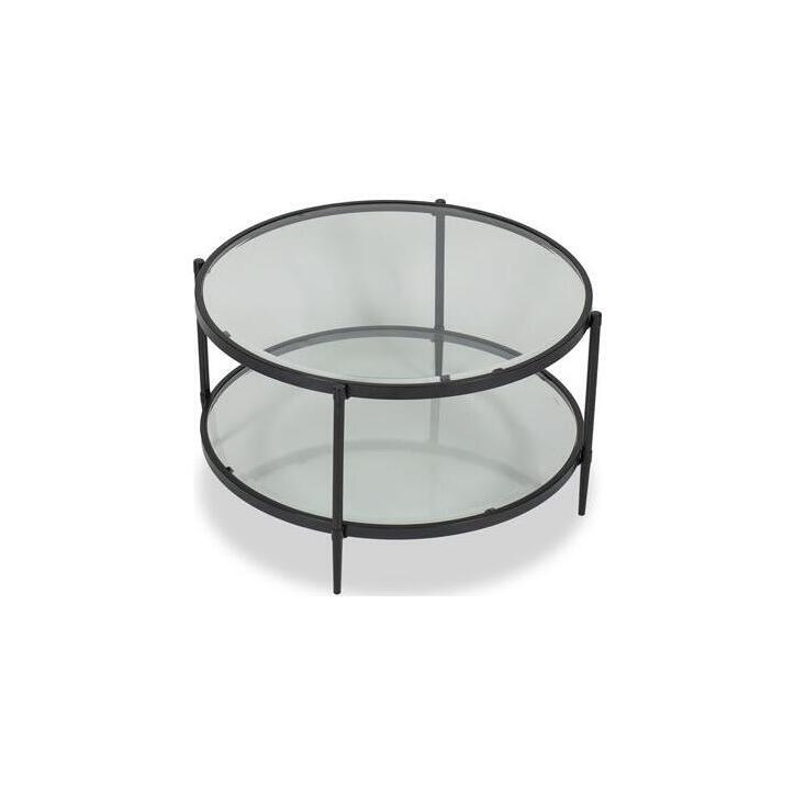 Industrial Brown Finish, Steel, Glass. Admire the luxurious lines of the tasteful Adlon Coffee Table. Featuring a sturdy circular frame with a brushed brass finish, the Adlon features a glass top which makes it the perfect choice for displaying your prized possessions. Exquisitely artisan crafted, the table also features flawless finishing touches such as a round edge and silken smooth metal frame.