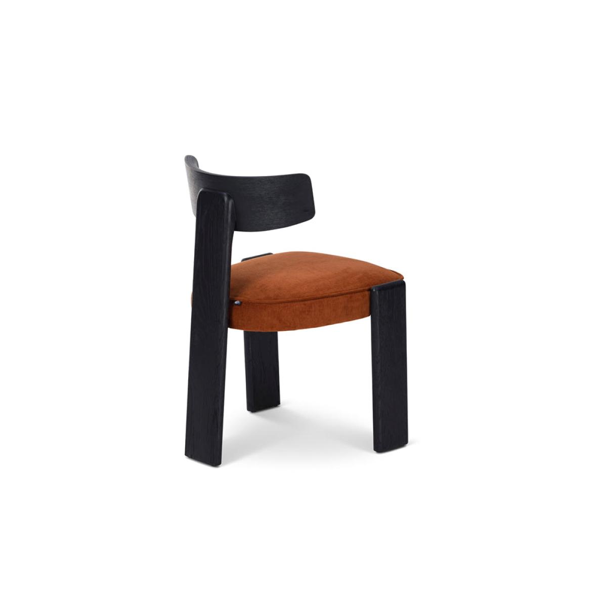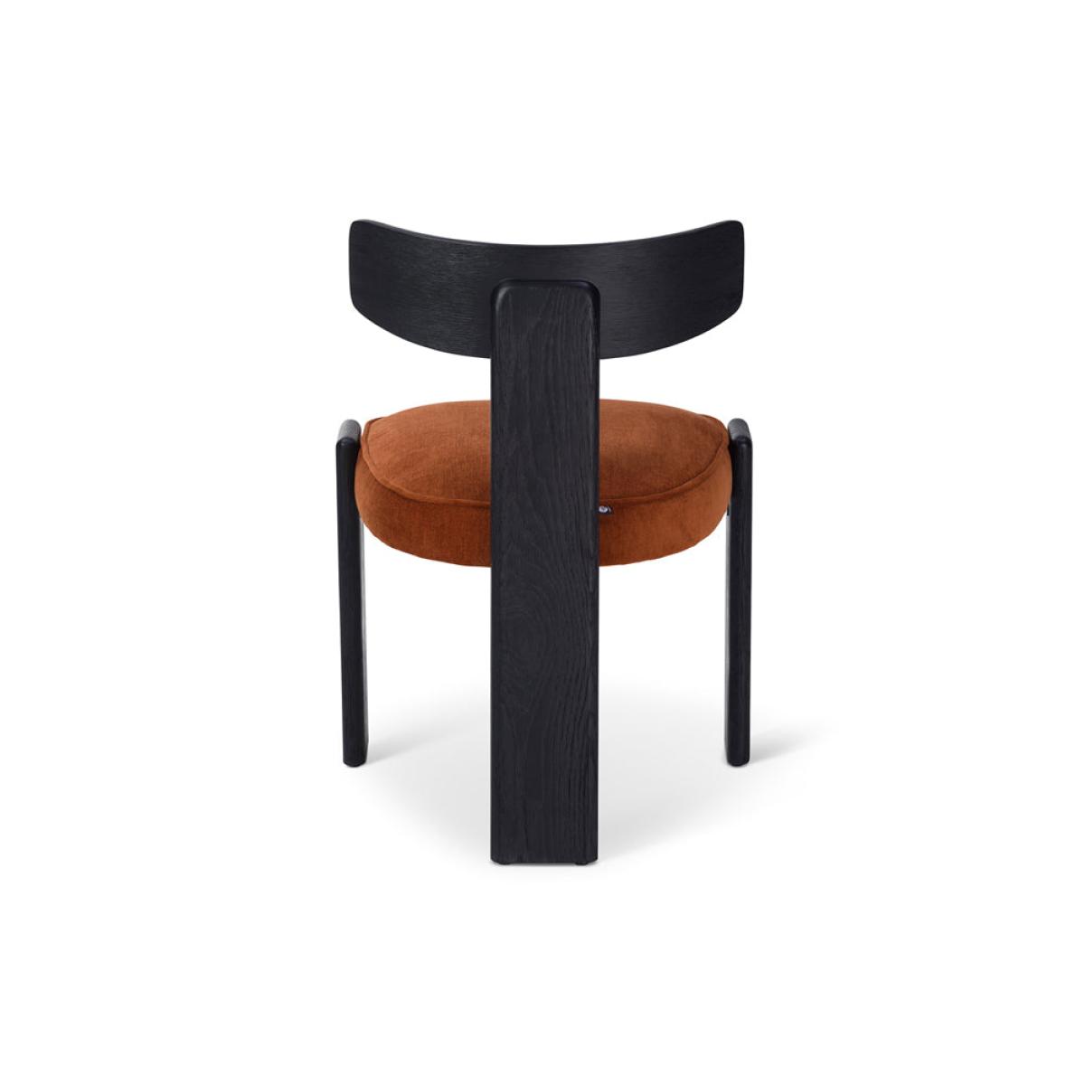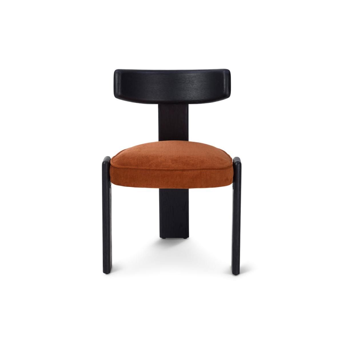 Elevate your dining space with the Albi Dining Chair, where inviting elegance meets unparalleled comfort. Crafted with a Matt Black Solid Oak frame and adorned with luxurious Chenille upholstery in the inviting Morgan Sienna hue, this chair is designed to enhance your dining area. The design of the back rest gives a comfortable support while dining. The rich, burnt orange tones of Morgan Sienna infuse your interior design space with warmth and vibrancy, creating an inviting atmosphere for gatherings. The marriage of the Matt Black Solid Oak frame and the sumptuous Chenille upholstery forms a harmonious blend of sophistication and cosiness. Features:Morgan Sienna Chenille Upholstery: Immerse yourself in the rich, burnt orange hue that adds warmth and character to your dining area. Matt Black Solid Oak Frame:The sturdy and elegant oak frame not only elevates the chair's visual appeal but also ensures longevity for years of enjoyment. Dimensions: H: 1040 cm x W: 595 cm x D: 540 cm Weight: 21 kg Materials: Orange