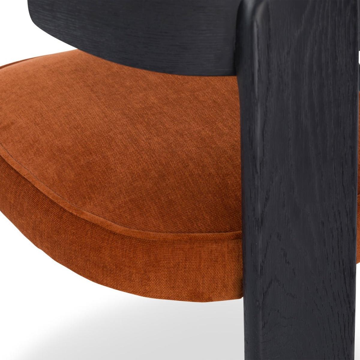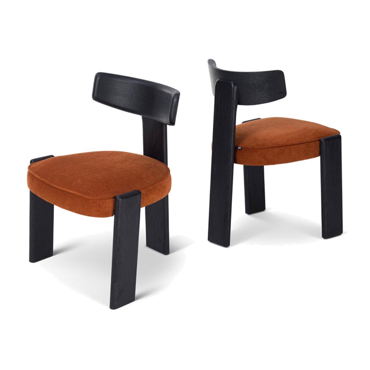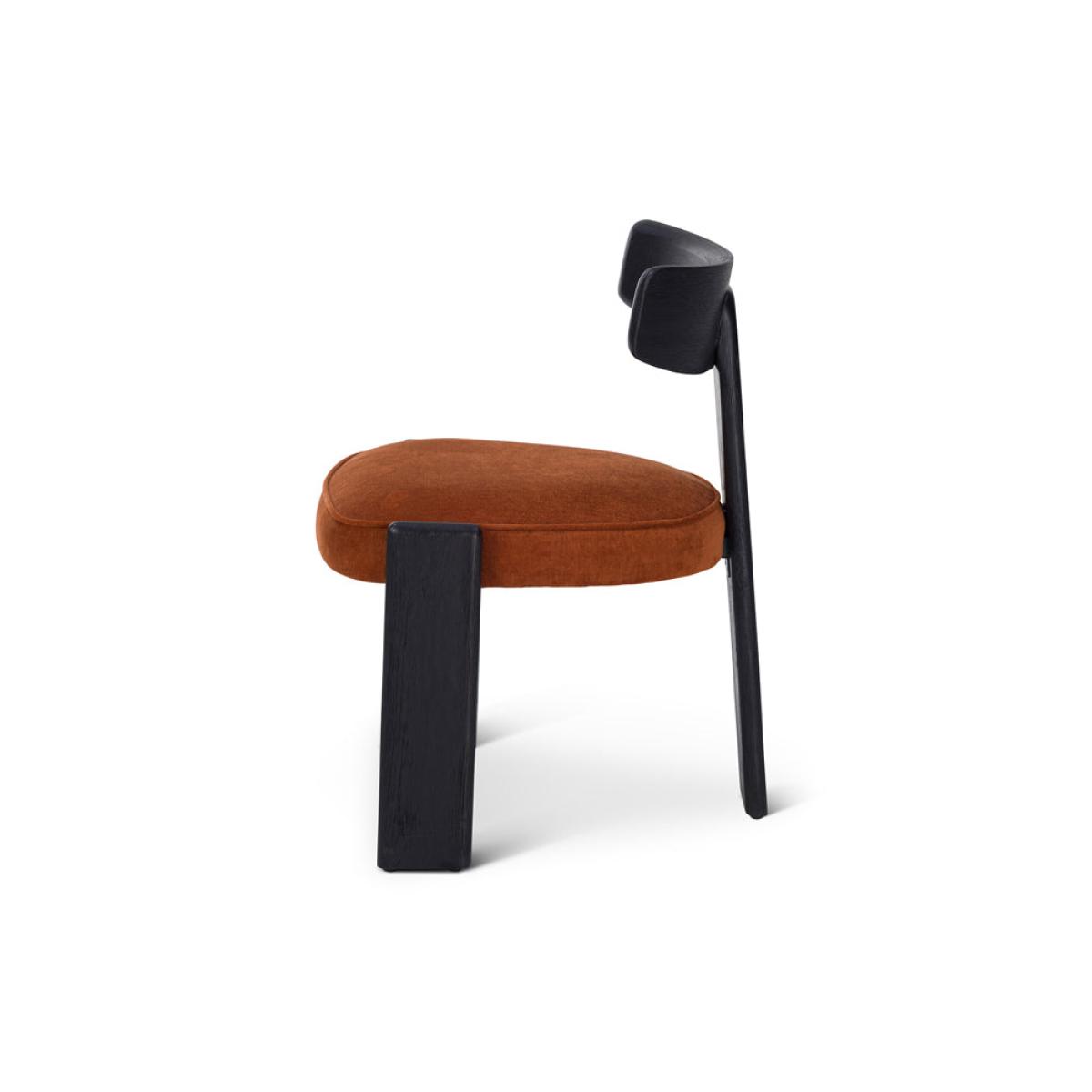 Elevate your dining space with the Albi Dining Chair, where inviting elegance meets unparalleled comfort. Crafted with a Matt Black Solid Oak frame and adorned with luxurious Chenille upholstery in the inviting Morgan Sienna hue, this chair is designed to enhance your dining area. The design of the back rest gives a comfortable support while dining. The rich, burnt orange tones of Morgan Sienna infuse your interior design space with warmth and vibrancy, creating an inviting atmosphere for gatherings. The marriage of the Matt Black Solid Oak frame and the sumptuous Chenille upholstery forms a harmonious blend of sophistication and cosiness. Features:Morgan Sienna Chenille Upholstery: Immerse yourself in the rich, burnt orange hue that adds warmth and character to your dining area. Matt Black Solid Oak Frame:The sturdy and elegant oak frame not only elevates the chair's visual appeal but also ensures longevity for years of enjoyment. Dimensions: H: 1040 cm x W: 595 cm x D: 540 cm Weight: 21 kg Materials: Orange