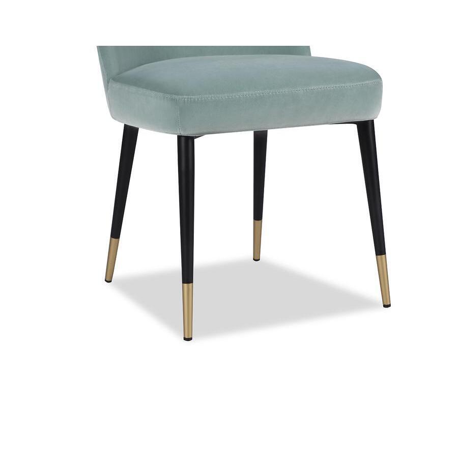 Boasting exquisite design combined with outstanding versatility, the Alfa Chair is upholstered in Gainsborough Agate Green Velvet with steel legs painted in black and finished with gold feet tips. The Alfa Chair adds a sense of simplistic styling to any dining interior and are only sold as a pair, not individually.