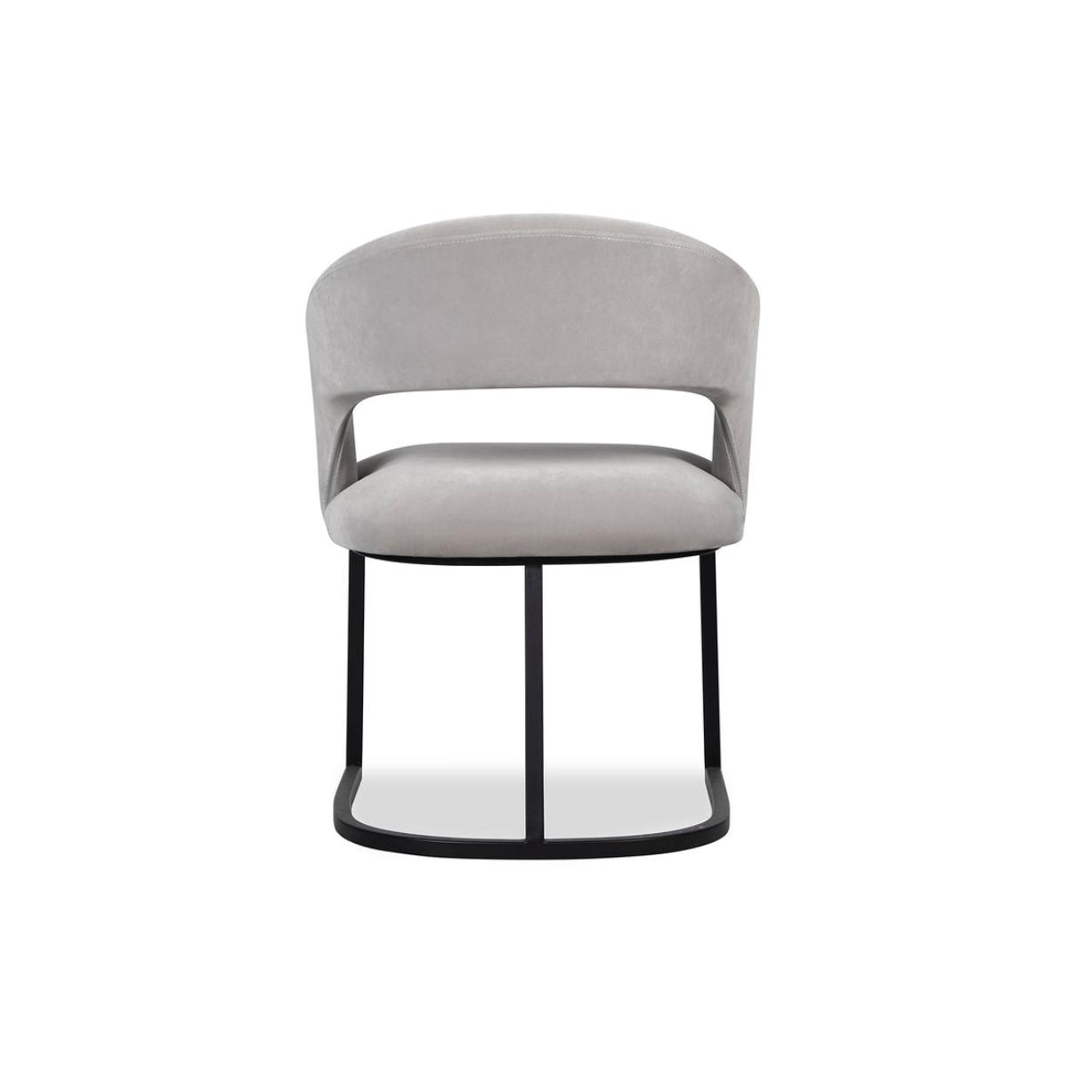 Upholstered in an elegant Gainsborough Dorian Grey Velvet, the Alfie chair is a true example of sleek design. its multi-functional yet versatile design finished with black matt metal legs provides a stylish solution to any interior for any occasion. Please note that legs require installation.