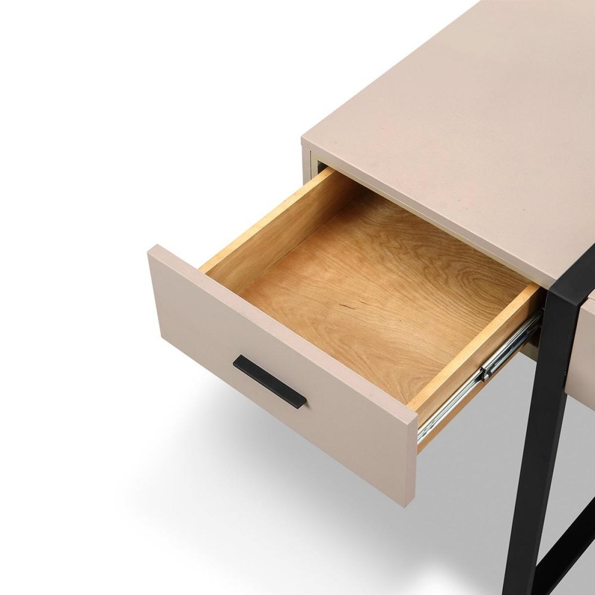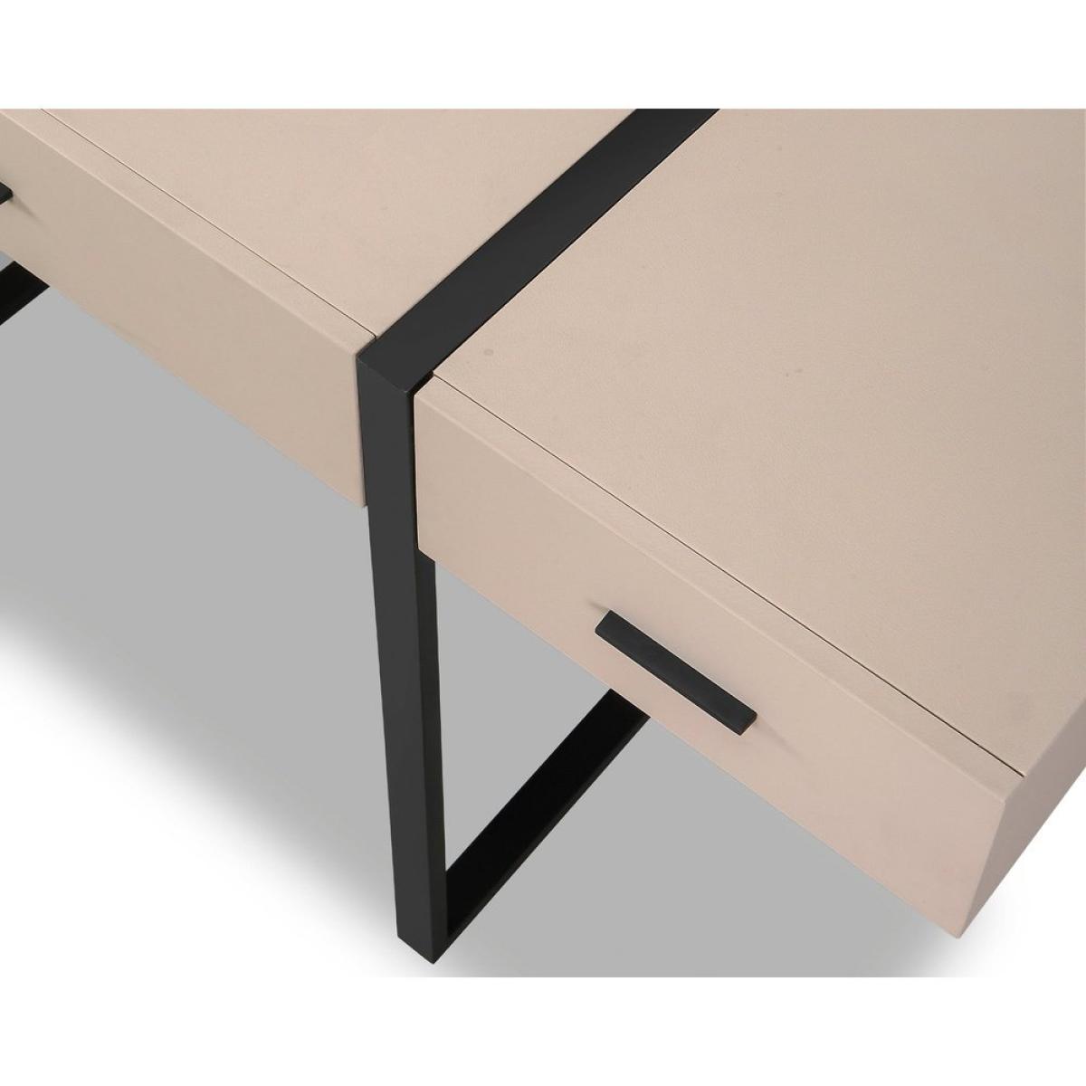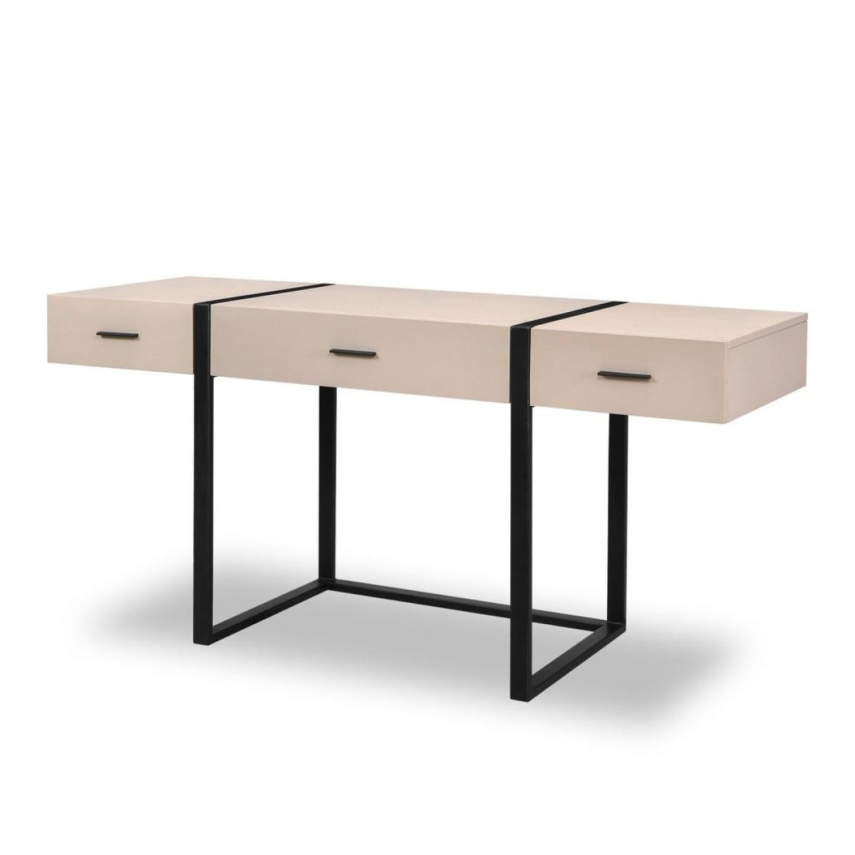 Boasting an exquisite, contemporary style the Almati Dressing Table is sophistication at its best. With a mink Faux Leather top and finished with Matt black metal legs and handles to complement the geometric base, the Almati offers a stylish storage solution for any bedroom interior. Dimensions: H: 76 x W: 160 x D: 55 cm Materials: Mink Faux Leather, Metal Legs Assembly Required: No