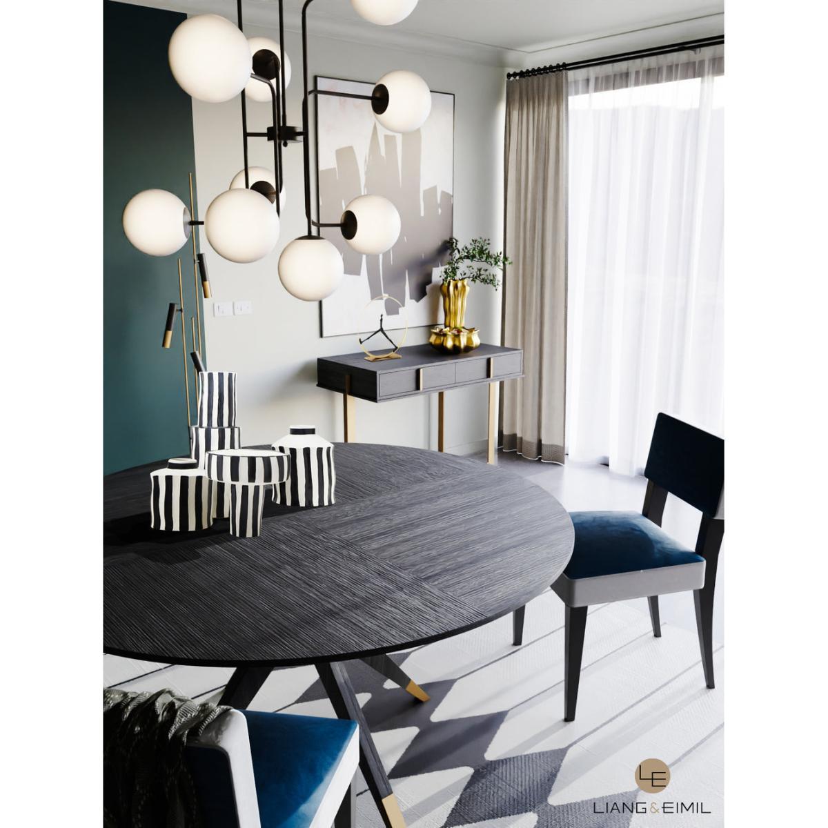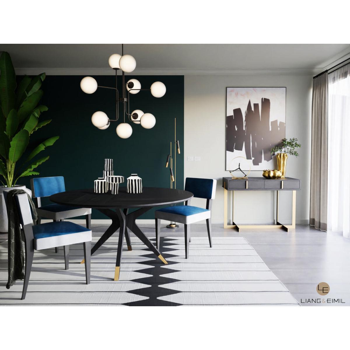 Wenge finish Oak Veneers, Polished Brass finish Cappings. Circular and statement, the Anthology Dining Table is an iconic mid century styled addition. This luxurious table boasts a statement base of slender spokes and an indulgent Wenge finish Oak veneer. Displaying a surface with a subtle quartered pattern, the Anthology would work wonderfully in chic spaces of both classic and contemporary design. *Moot Trading Ltd is not a lender and acts only as an introducer. The credit product is provided by Klarna Bank AB (publ). Credit is only available to permanent UK residents aged 18 and over, subject to status. Terms and conditions apply. Please note that the following products are not regulated by the FCA: Pay in 30 days and Pay in 3 instalments. Read More.