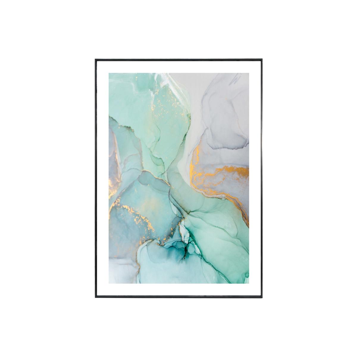 The Aqua Vermeil Print is the ideal way to add colour to your walls, combining light shades of blue, green, and grey with touches of gold for an elegant finishing touch. This is an abstract piece that will lift and brighten your space, but the tasteful teal tones will enhance it perfectly. Fashionable and printed on acid-free paper, this is a must-have item to enhance your walls and add a creative touch. Placed inside a black wooden frame that is prepared for straight mounting to a wall. Features: Print on acid-free paper, Black wooden frame, Plexiglass