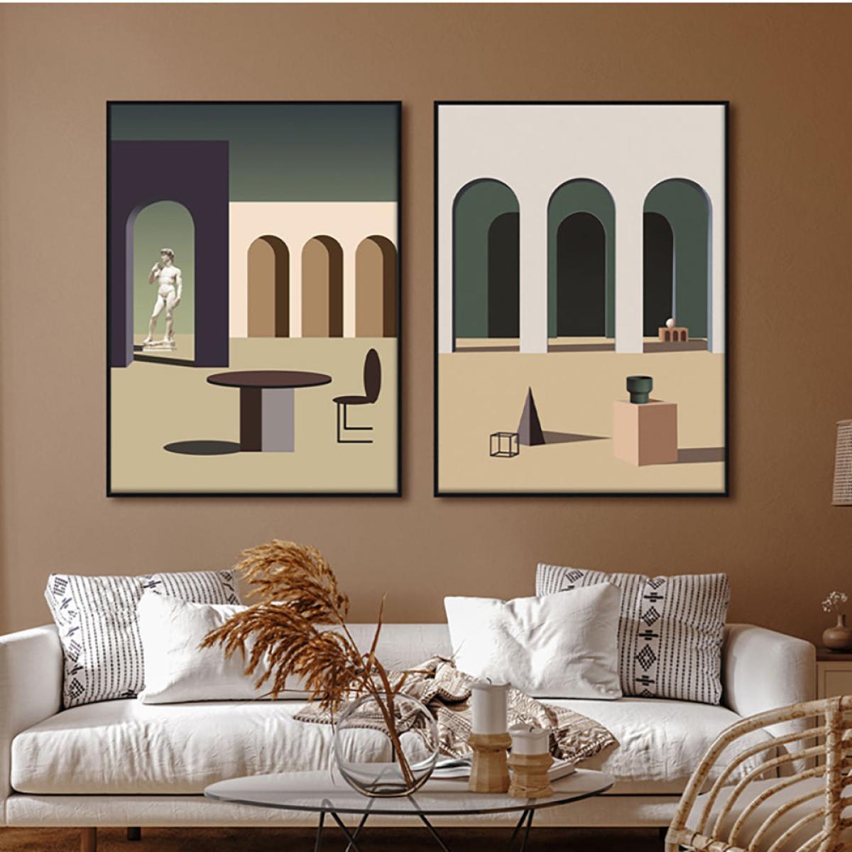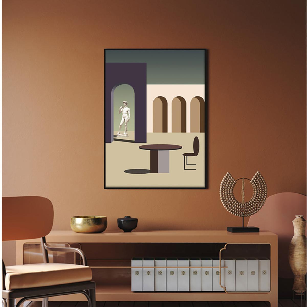 Liang and Eimil have truly excelled themselves with this creative and exciting print. Featuring Michelangelo's David placed under a three-dimensional dark blue arch, this very modern piece has been. View More. Liang and Eimil have truly excelled themselves with this creative and exciting print. Featuring Michelangelo's David placed under a three-dimensional dark blue arch, this very modern piece has been elevated with more than just a nod to the Renaissance period. The clean and sharp lines contrast beautifully with the vibrant earth tones, making this a superb painting to display in a modern home. The Arcade II print is set in an aluminium frame and measures H: 80 x W: 55 x D: 3. 5 cm. It is perfectly suited to be teamed with the Arcade I print to complete the collection.
