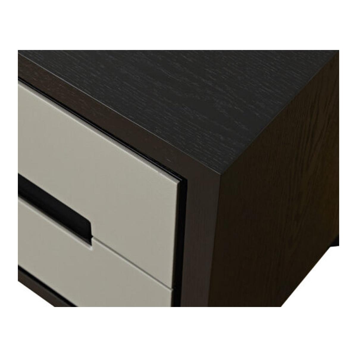 The Liang & Eimil Ardel bedside table is a gorgeously sophisticated option when it comes to bedroom furniture. The wenge-finished ash veneer combines beautifully with the textured faux leather inset panels and the bold crossover legs. This Liang & Eimil Ardel bedside table has a contemporary look but is nevertheless versatile enough to fit into your home no matter what your décor style may be. Perfect to use both as a display surface and for storage, this table is a must-have. The Ardel bedside table is well-sized for various spaces with its dimensions of 63cm high, 65cm wide and 45cm deep. Dimensions: H: 63 x W: 6.5 x D: 45 cm Materials: Ash Veneer, Faux Leather