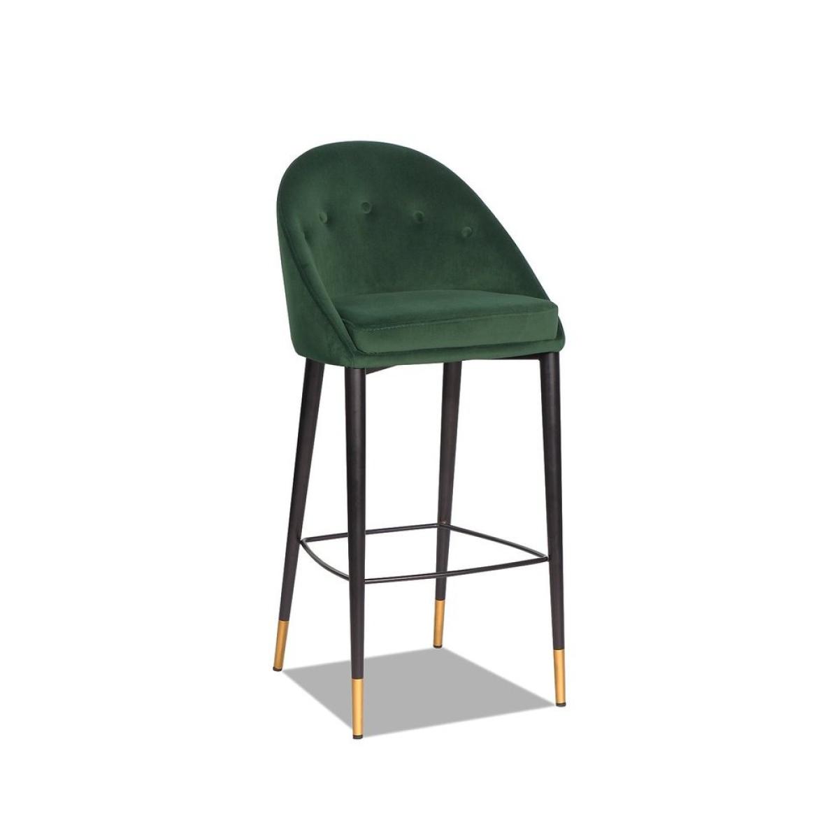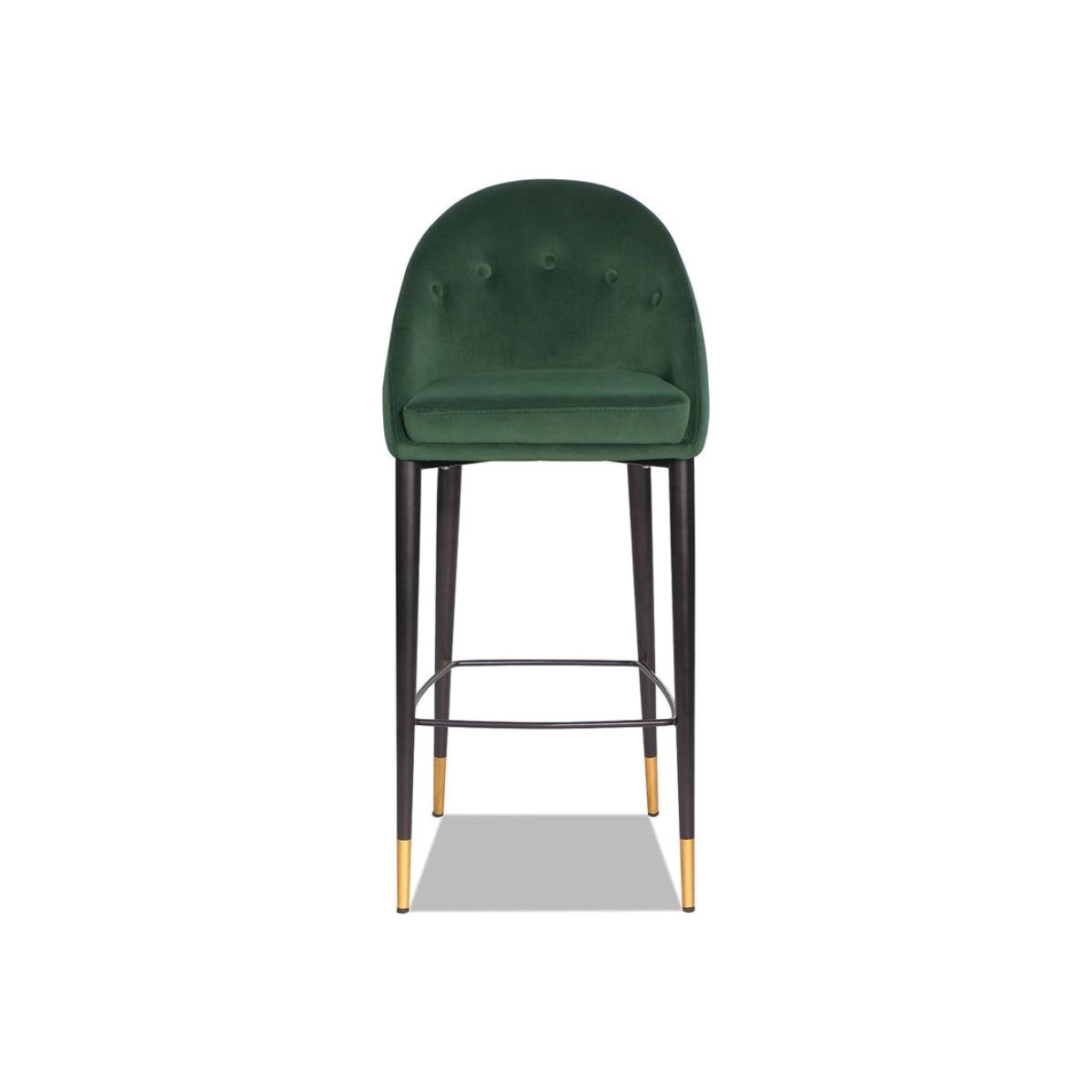 When only a luxurious stool will do, the Liang & Eimil Arden is the perfect choice, especially in this glorious and inviting emerald green velvet. This sumptuously upholstered stool is guaranteed to embellish your home, and take your home bar, breakfast bar or dressing table to another level of elegance. The jewel green velvet fabric is soft, comfortable and tactile with a row of delightful buttons on the wraparound stool back, while the cushion is generously padded for total comfort. The stool's legs are long, black and elegantly tapered with long brass-tipped feet and a slim foot rest is also provided. Dimensions:W:50.5 x D:53 x H:104 cm Seat height:77cm