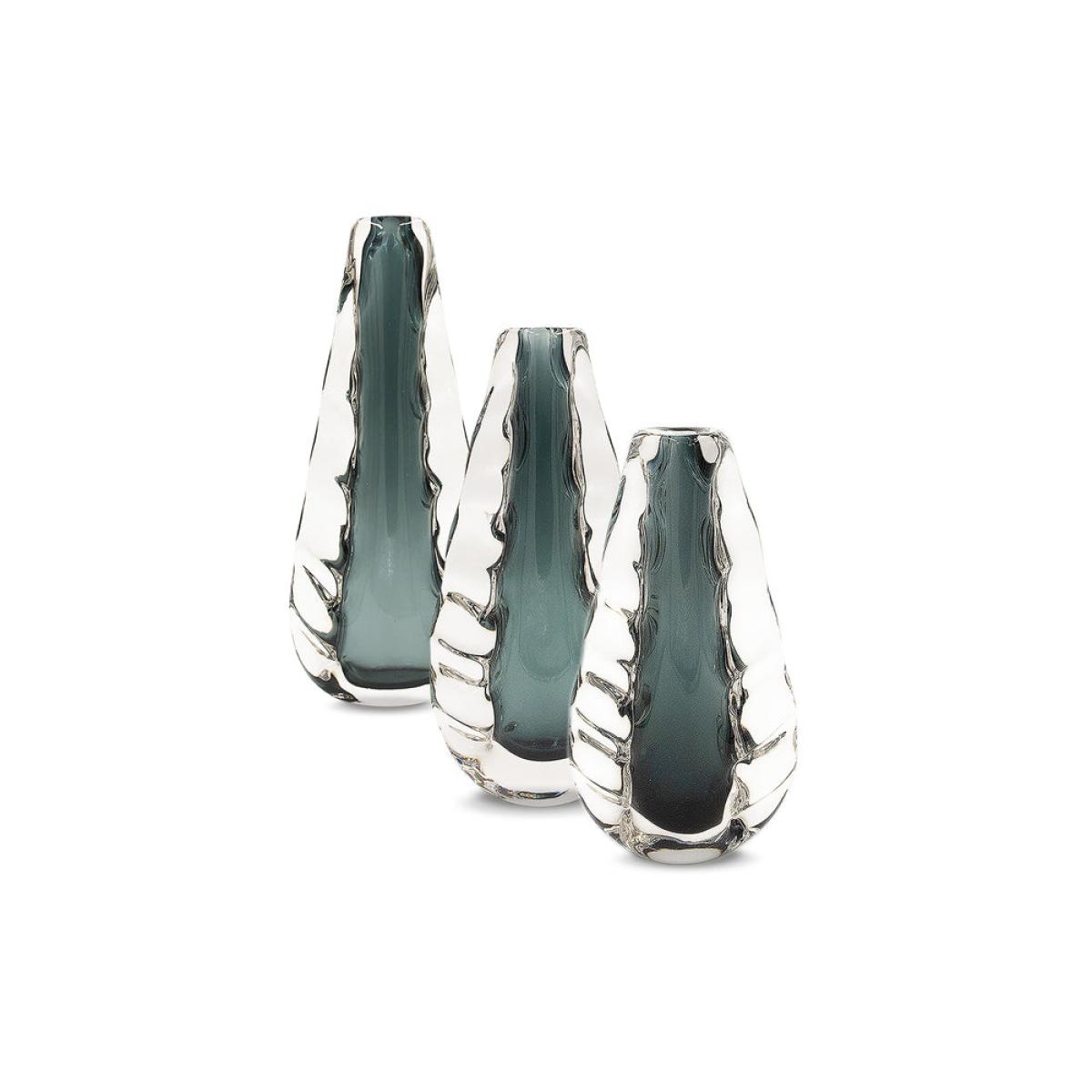 In a stunning scallop shell shape, the Liang & Eimil Astell crystal blue vase is an eye-catching piece. From the front, this vase offers a traditional shape, but turn it to the side, and that’s when the magic happens. The edges of the vase come together in a swirling ripple, almost seeming totally separate. Suspended within the clear crystal vase is a waterfall of blue, finishing with a gentle rounded base. This allows the vase to be displayed empty or used to accentuate the colours in your favourite blooms. This vase is 32 cm tall, 18 cm wide and 8 cm deep. Dimensions: Small - W: 18 x D: 8 x H: 32 cm Medium - W: 18 x D: 8 x H: 37.5 cm Large - W: 20 x D: 9 x H: 44 cm Materials: Crystal Assembly Required: No Care Instructions:Wipe with a clean, soft, dry cloth. Do not use harsh abrasives or cleaners