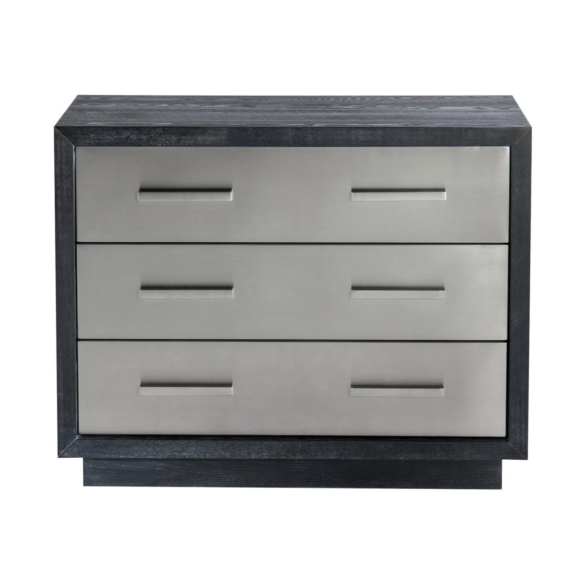 I love this chest because of its clean, modern design paired with the brushed stainless steel handles, which add a sleek, contemporary touch. It works particularly well in minimalist or industrial interiors, where its monochrome palette and straightforward lines can be showcased, but it also balances nicely with warmer textures for a more eclectic feel. Practical styling tips include layering it with simple decorative objects like ceramics or books on top, and pairing it with understated yet tactile hardware or textiles to keep the look balanced. It’s versatile enough for bedrooms, living rooms, or hallways, making it a functional yet stylish addition to many interior schemes.