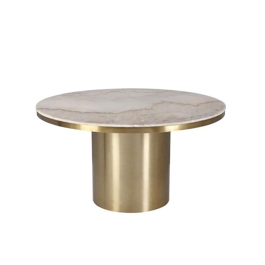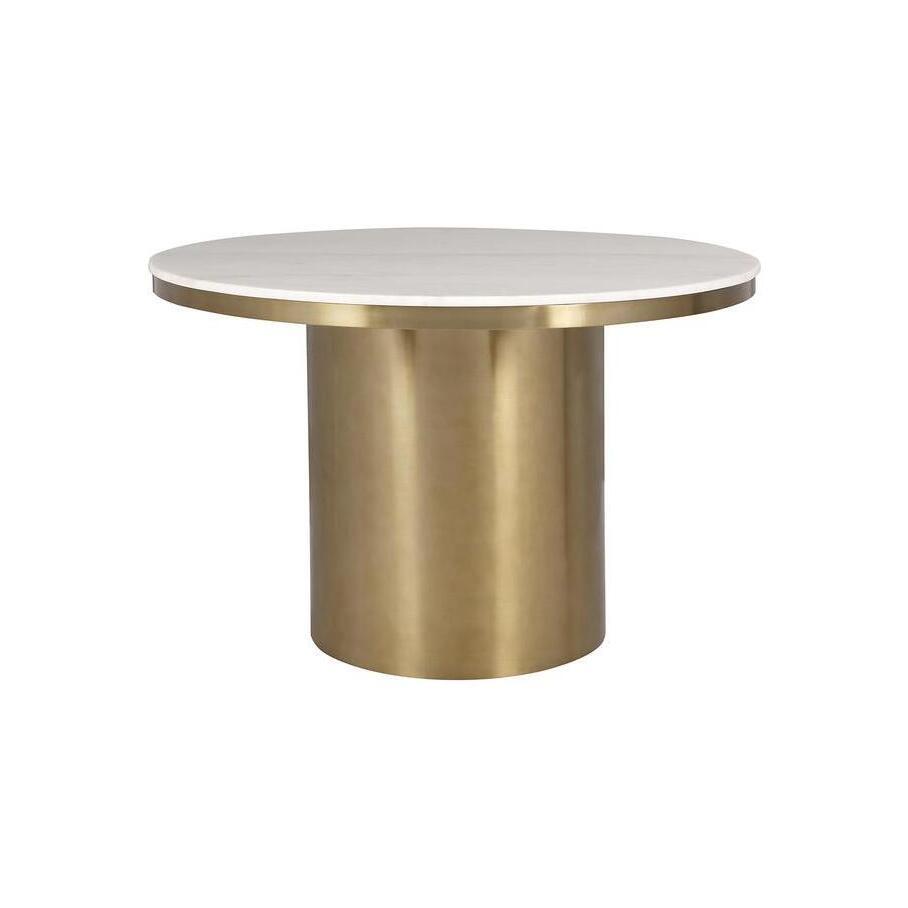 White Marble Top Brushed Brass Base Please be aware the lining junction on the round metal base is not avoidable! This is not a defect!.