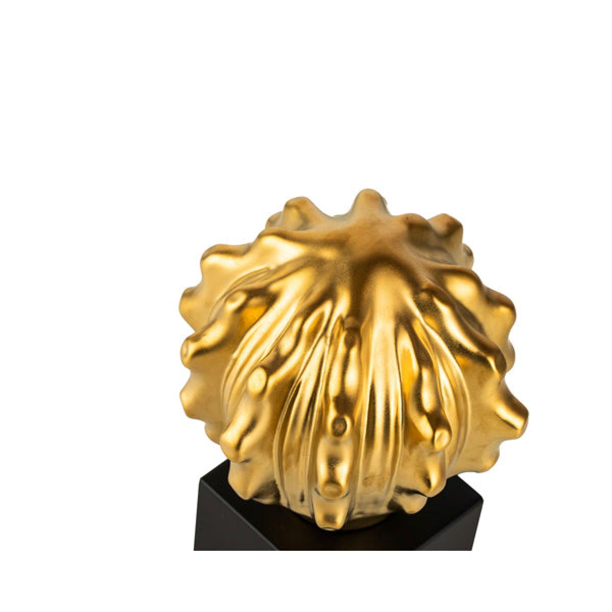 I love this piece because it combines bold texture with a striking gold finish, making it a true statement sculpture. It works beautifully in modern or contemporary interiors, particularly as a centrepiece on a side table, mantel, or even in a display cabinet for added visual interest. When styling with this ornament, keep surrounding decor minimal to let it shine; pairing it with matte black or neutral-toned accessories allows its rich finish to stand out. Practical tip: it’s perfect for adding a touch of luxury to a minimalist scheme or contrasting with softer textiles and natural materials for an eclectic vibe.