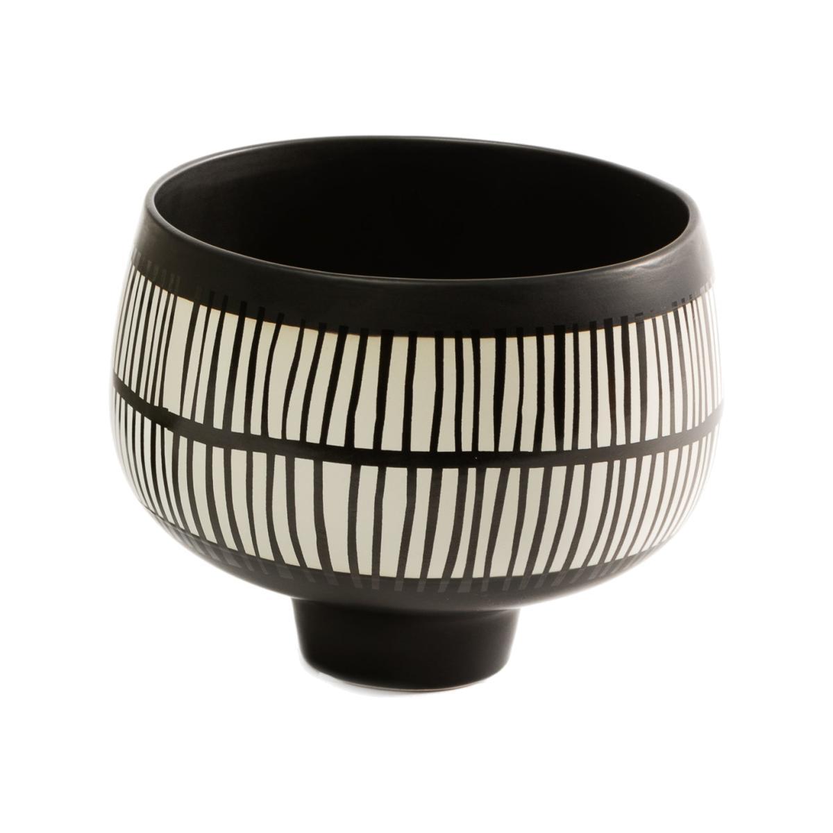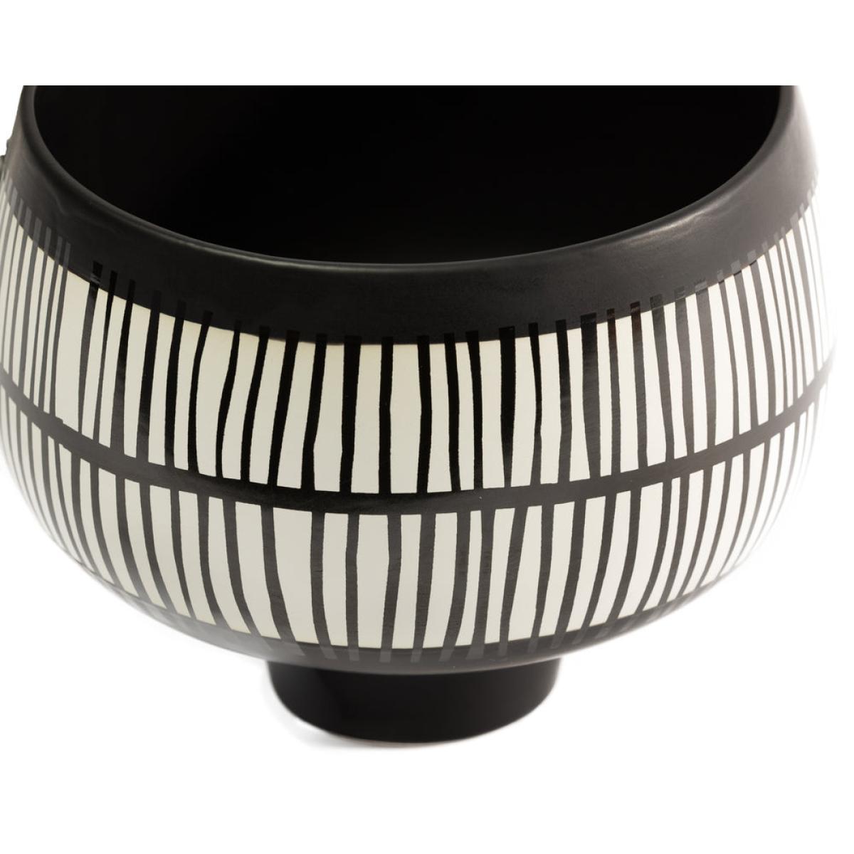 I love this ceramic pot for its clean, modern look with subtle detailing that adds visual interest without overpowering a space. It works particularly well in contemporary or minimal interiors, but its timeless design also makes it versatile enough for boho or Scandinavian styles. For styling, I recommend pairing it with lush greenery or trailing plants to soften its sleek lines. Practical tip: choose a plant with a root system that fits comfortably inside, and consider elevating it on a small stand or placing it on a shelf for added impact. Its neutral colour palette allows it to seamlessly blend into various colour schemes, making it a stylish yet functional feature in both living rooms and kitchens.