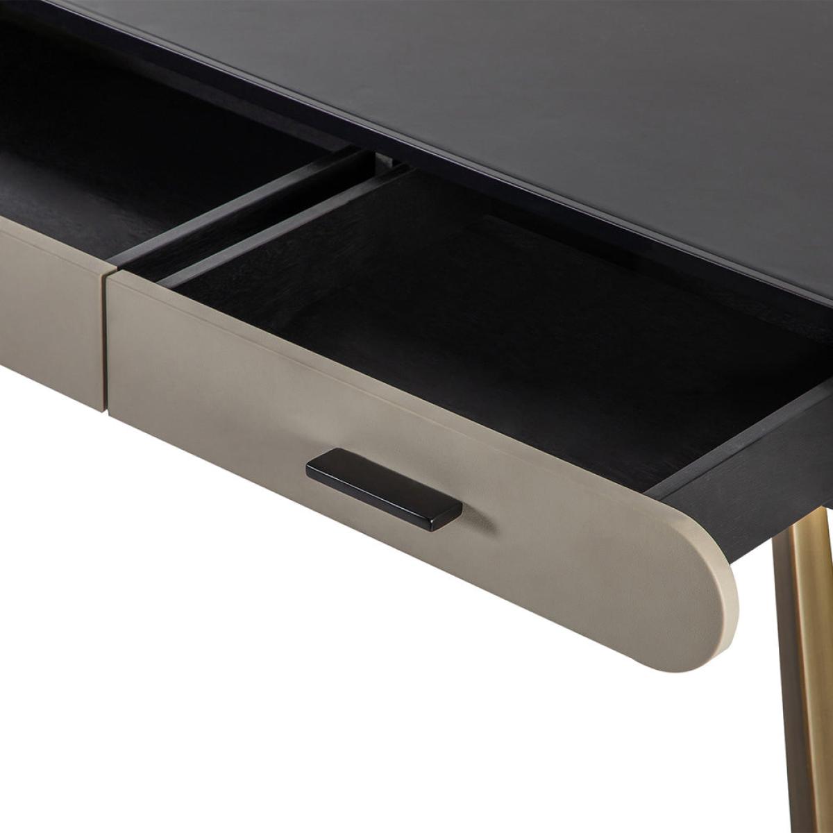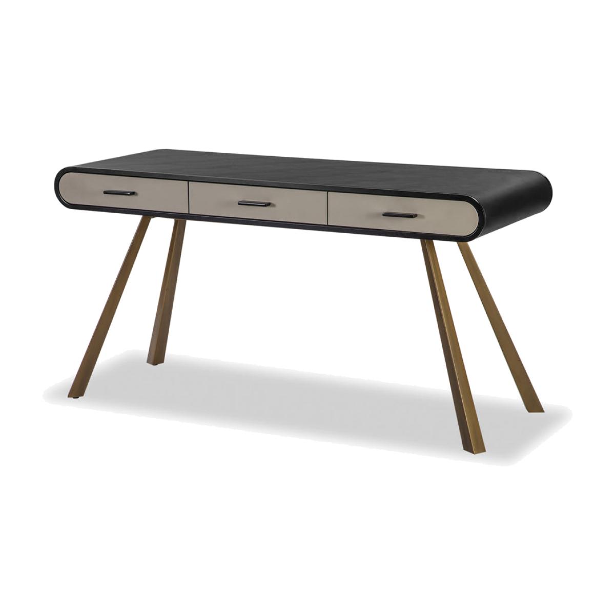 The Chiado desk by Liang & Eimil is perfect for a stylish and contemporary office space. The three-drawer desk is smart and elegant with its smooth rounded corners and graceful splayed legs. Made from black ash veneer and covered with contrasting black and grey vegan leather, it offers a luxurious smooth surface, perfect for a laptop. The desk also has metal legs with an antique brass finish. It offers plenty of space to store away any stationery and paperwork in its three drawers, making it easy to stay tidy and organised. This sophisticated desk measures 78 x 150 cm, with a depth of 55 cm. Dimensions: W: 150 x D: 55 x H: 78 cm Materials: Vegan Leather Assembly Required:Yes Care Instructions:Wipe with a clean, soft, dry cloth. Do not use harsh abrasives or cleaners