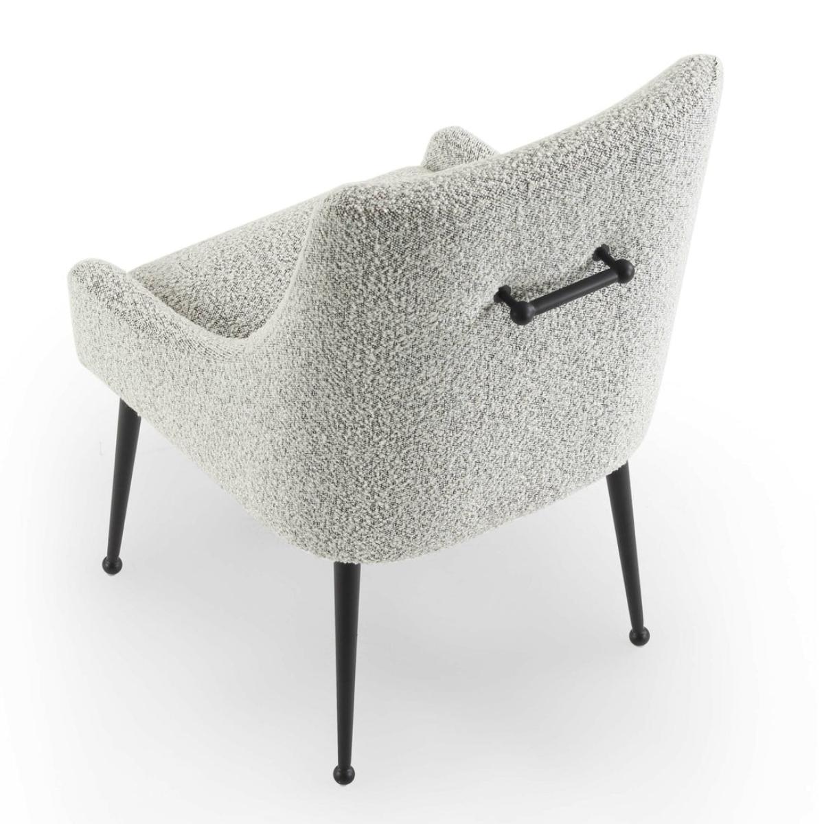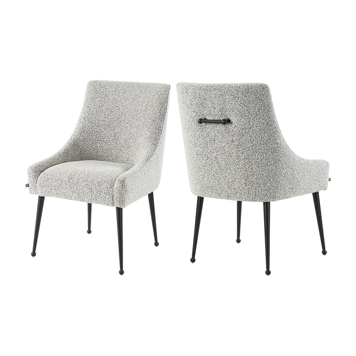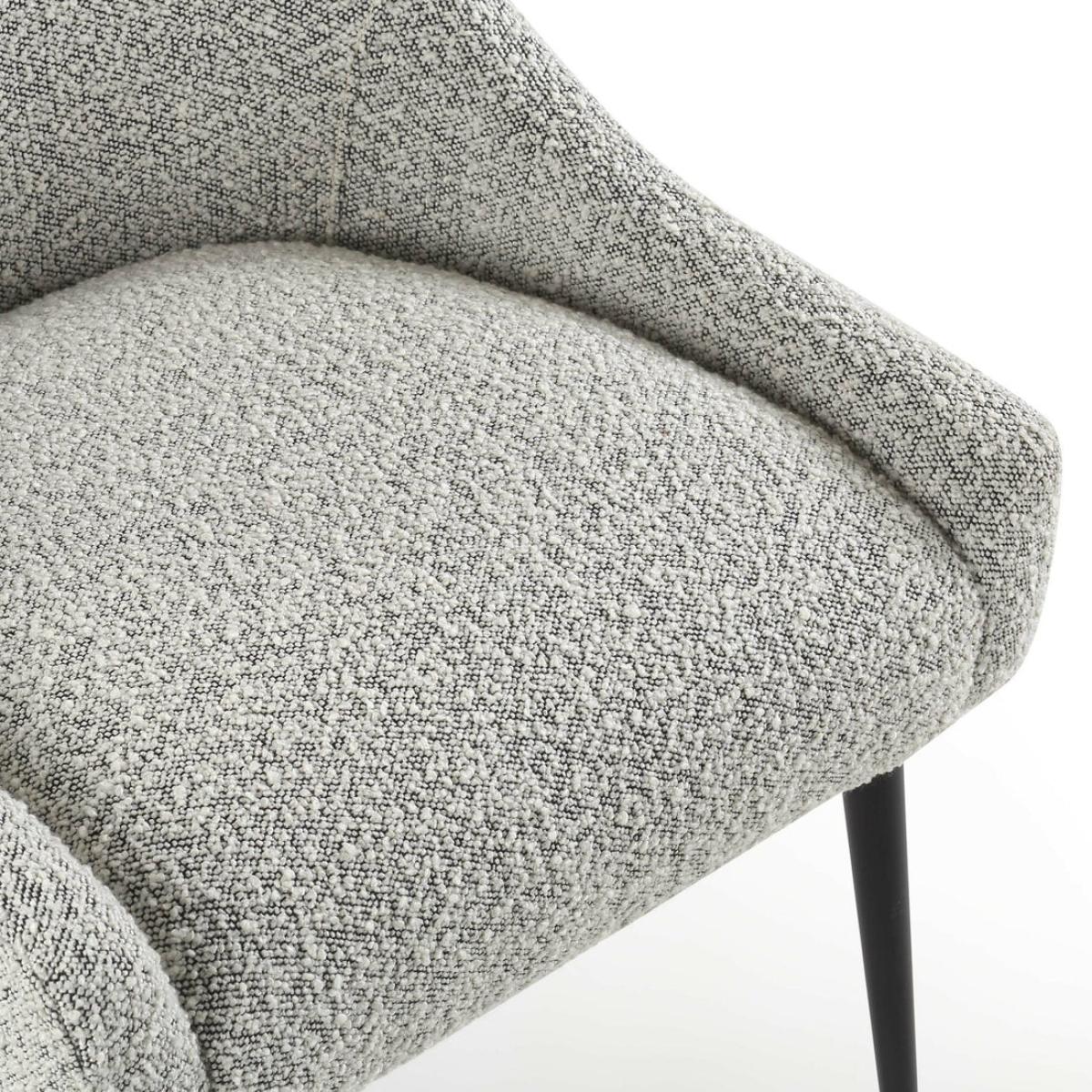 Boucle Whisk fabric, iron legs & handle in matt back Upholstered in a sumptuously soft velvet, the Cohen offers an alluring lustre and is available in a range of selected shades. Tapered metal legs are lovingly finished in beautiful matt black, as well as a convenient handle in the backrest which gives the chair a practical and appealing feature. (Legs require installation) Dimensions: H:855 x D:630 x W:560mm Materials: Boucle , Iron Assembly Required:Yes