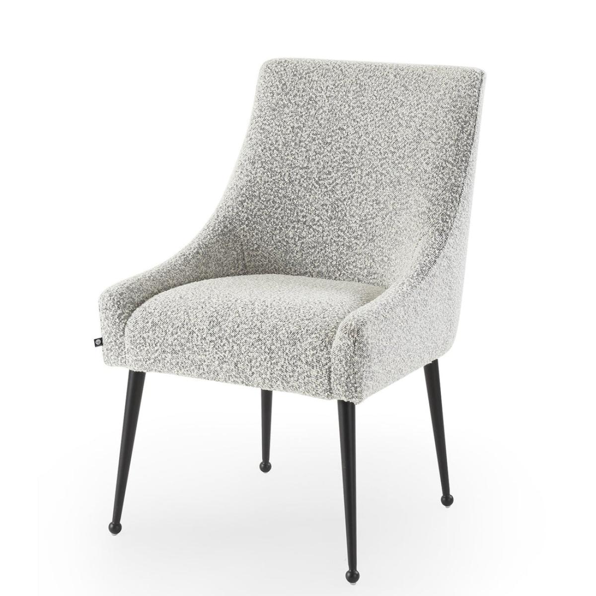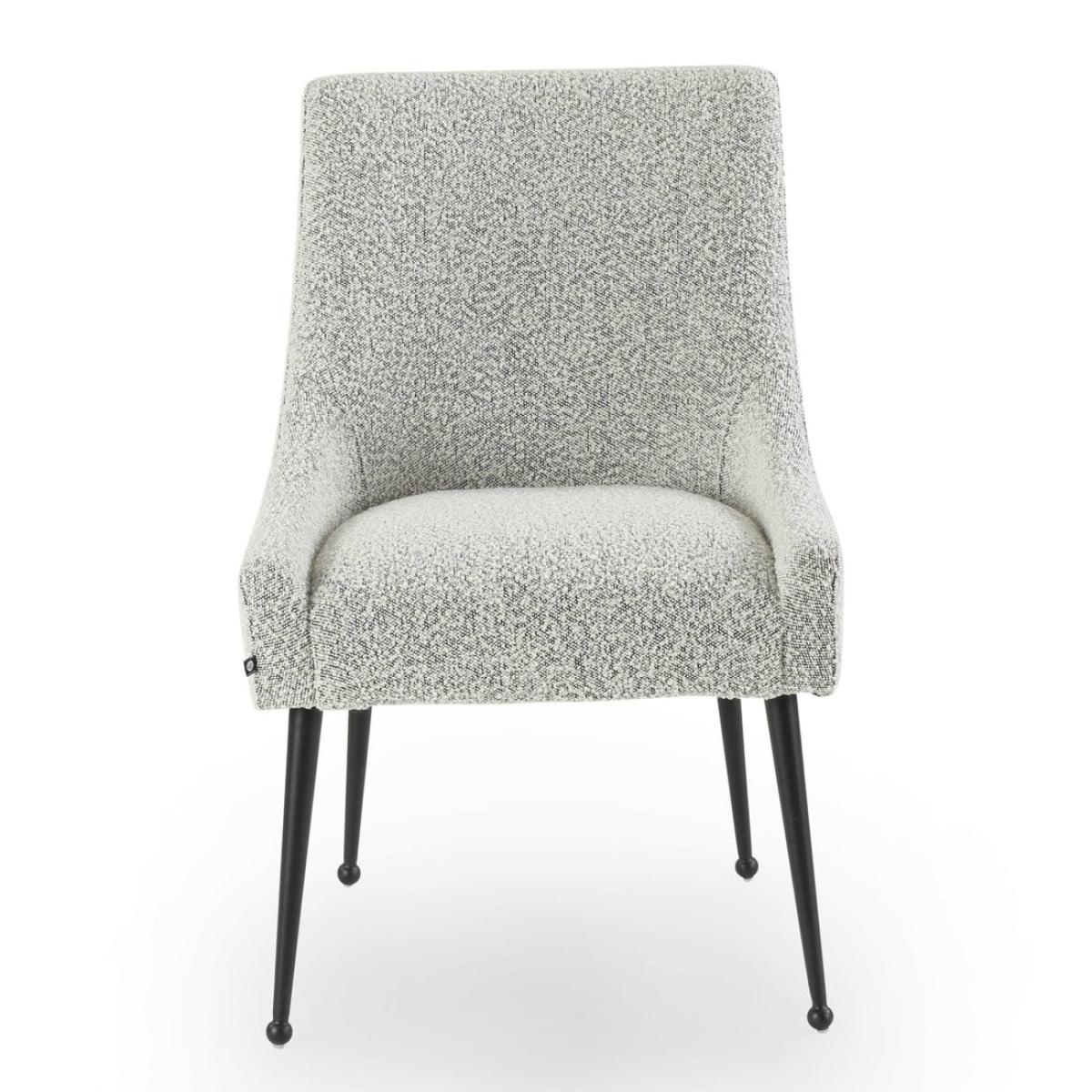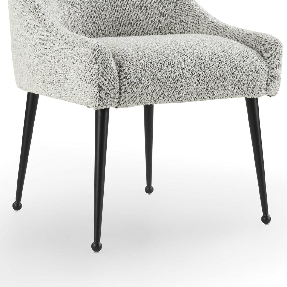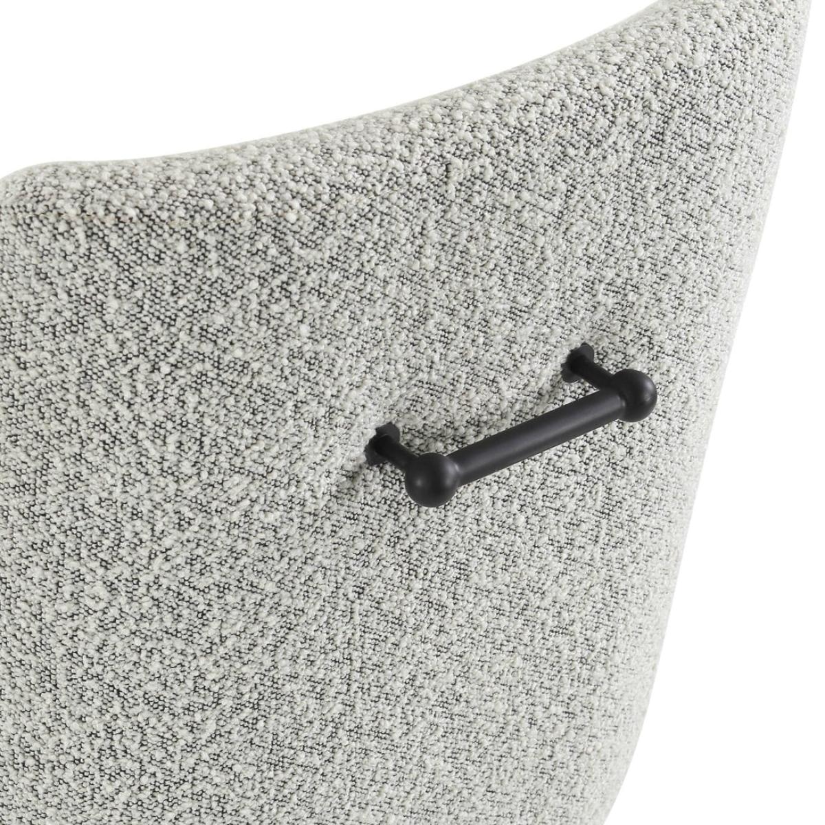 Boucle Whisk fabric, iron legs & handle in matt back Upholstered in a sumptuously soft velvet, the Cohen offers an alluring lustre and is available in a range of selected shades. Tapered metal legs are lovingly finished in beautiful matt black, as well as a convenient handle in the backrest which gives the chair a practical and appealing feature. (Legs require installation) Dimensions: H:855 x D:630 x W:560mm Materials: Boucle , Iron Assembly Required:Yes