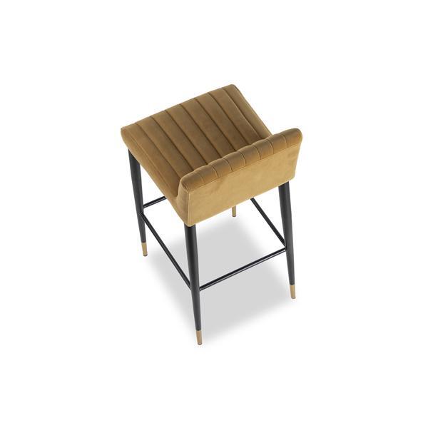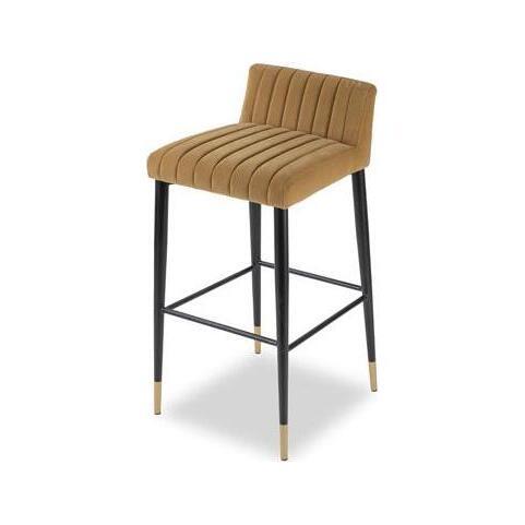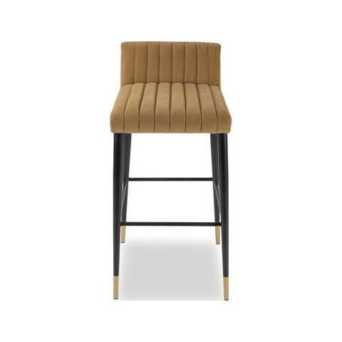 Toscana Camel Velvet, Matt Black Steel Legs with Gold Feet Bring elegance to your entertaining space with the Coltane Stool. Offering truly distinctive style guaranteed to stand out from the crowd. The contemporary channelled upholstery of the Coltane Bar Stool with its softly supportive seat and the sleek lines are simply second-to-none. The Coltane features Toscana Camel Velvet with tapered legs capped in gold and with a footrest. 100% Polyester.