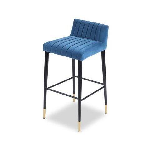 Toscana Polar Blue Velvet, Matt Black Steel Legs with Gold Feet Bring elegance to your entertaining space with the Coltane Stool. Offering truly distinctive style guaranteed to stand out from the crowd. The contemporary channelled upholstery of the Coltane Bar Stool with its softly supportive seat and the sleek lines are simply second-to-none. The Coltane features Toscana Polar Blue Velvet with tapered legs capped in gold and with a footrest. 100% Polyester.