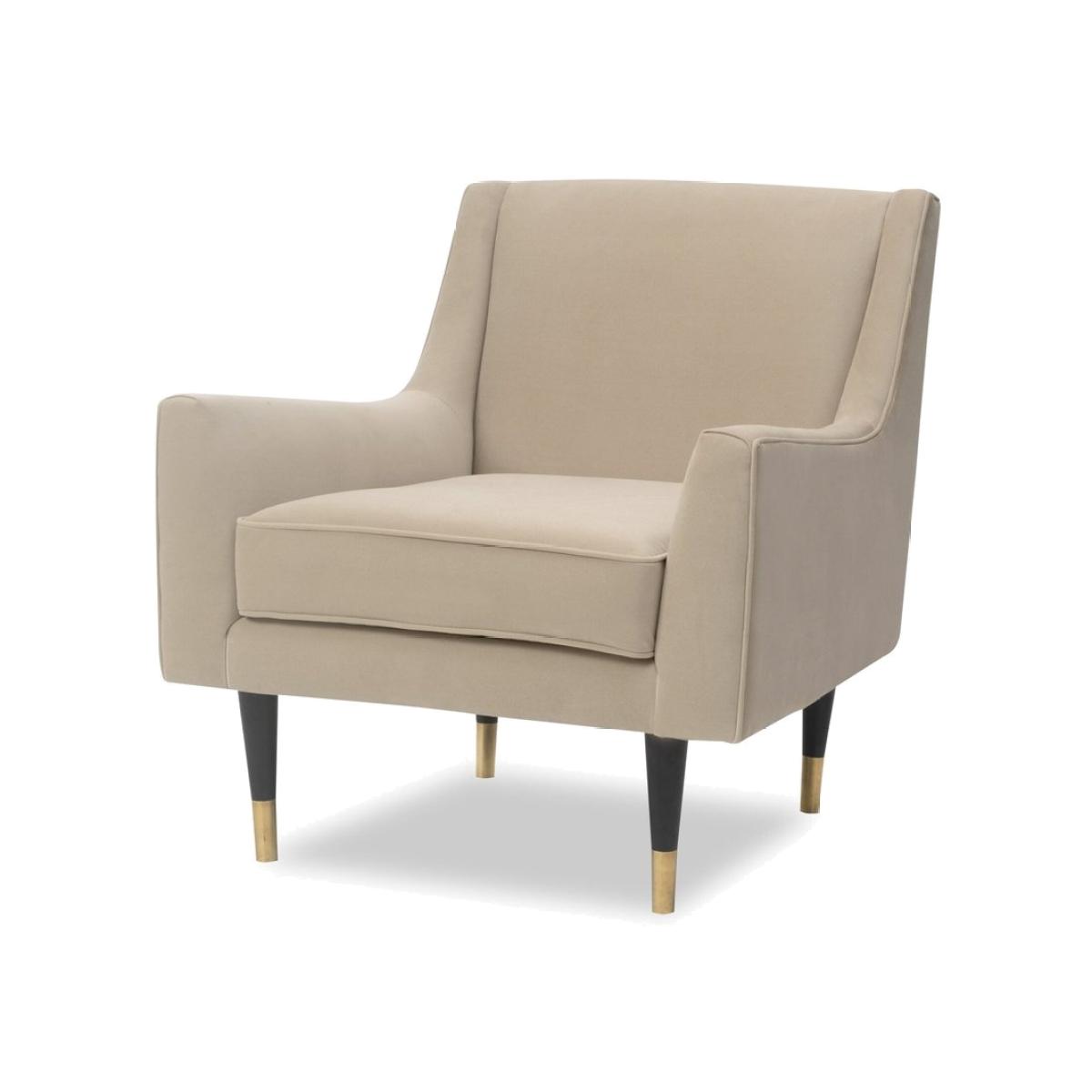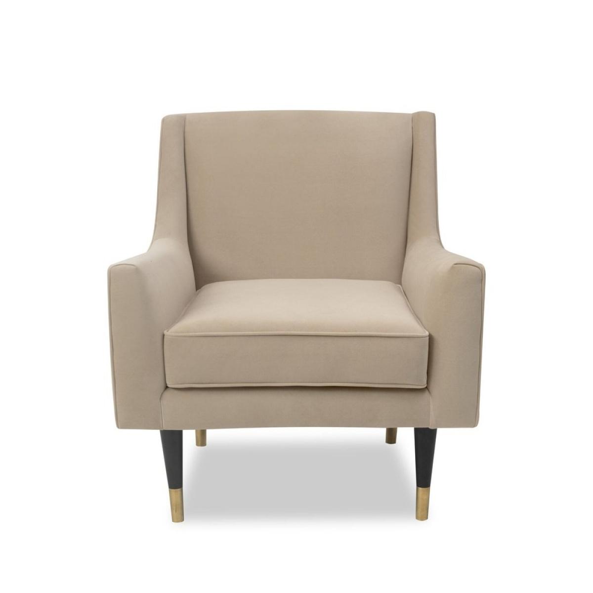 Oxford Latte Velvet, Solid Wood Legs in Wenge, Polished Brass Cups Providing an inviting perch perfect for moments of quiet contemplation and refined reading, the Conte is a strong character that will be an important element of the luxurious lounge. Available in a selection of both strong and subtle shades, the Conte features luxurious legs of solid wood capped with polished brass cups. Legs require installation. Dimensions: H:825 x D:800 x W:765mm Materials: Velvet, Solid Birch Assembly Required:Yes