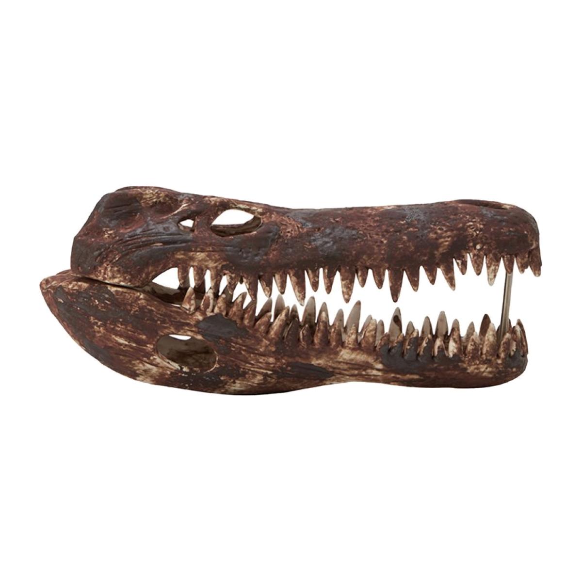Unearth the mystique of the Croco Ceramic Sculpture, a stunning crocodile skull crafted in rich, earthy brown tones. This captivating masterpiece seamlessly blends the primal allure of ancient reptilian forms with the modern elegance of ceramic artistry. With its lifelike precision and captivating realism, the Croco Ceramic Sculpture invites you to explore the fine line between nature and art. Whether displayed as a standalone centrepiece or nestled within a curated collection, this brown crocodile skull sculpture is a testament to the fusion of raw beauty and natural nature design. Introduce the Croco Ceramic Sculpture and let the spirit of the ancient reptilian world breathe life into your surroundings. Features:Brown Ceramic