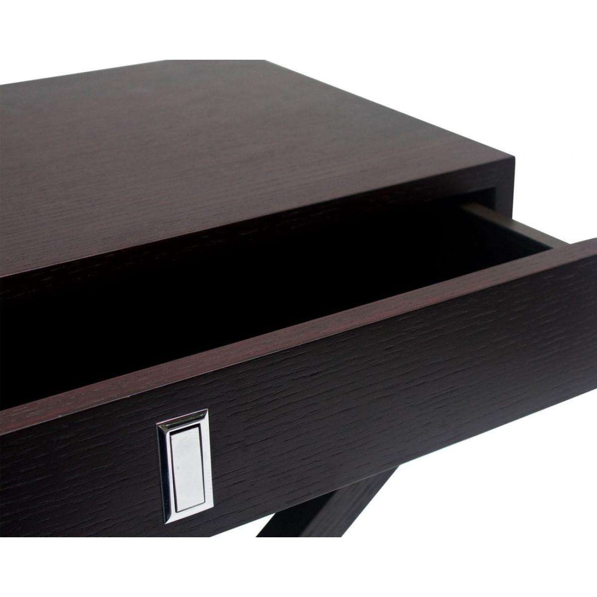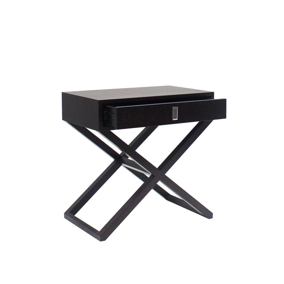 A warm Wenge finish oak side or bedside table as a modern update on classic campaign furniture designs. Adorned with a baguette cast polished stainless steel handle. IMPORTANT NOTICE!!! If the furn. View More. A warm Wenge finish oak side or bedside table as a modern update on classic campaign furniture designs. Adorned with a baguette cast polished stainless steel handle. IMPORTANT NOTICE!!! If the furniture will be placed directly on carpet, please use a continues adhesive strip felt pad underneath the wooden frame to protect the carpet on the floor (felt is not provided).