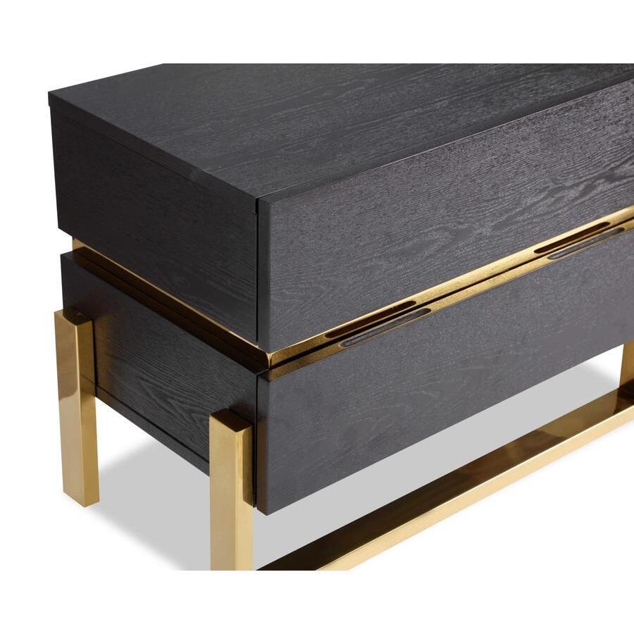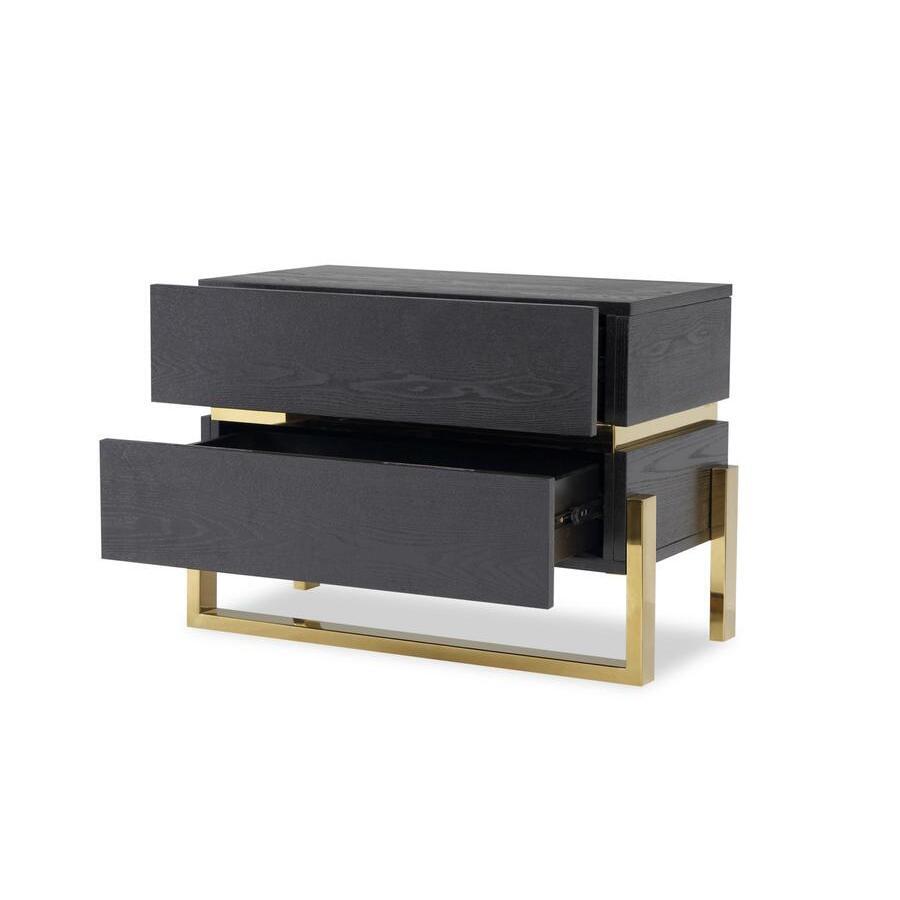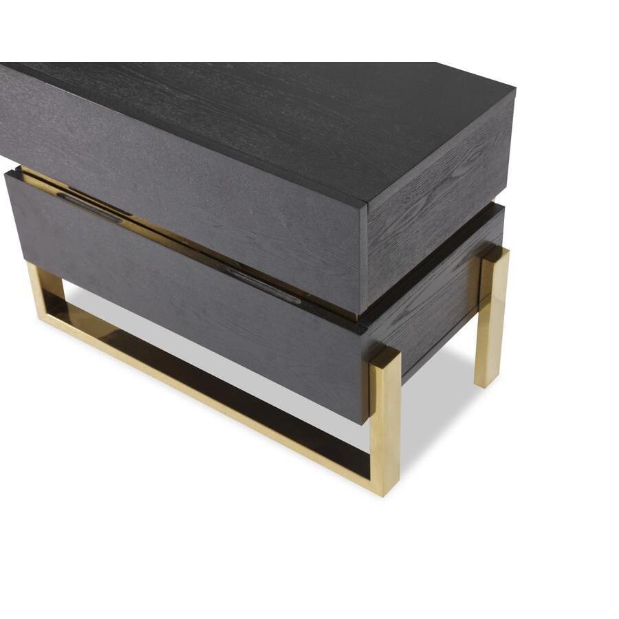 Add a touch of luxury to your bedroom interior with the stunning Enigma range. Beautifully handcrafted in black ash veneer and finished with stunning brass detail, the Enigma Bedside Table is a must have for any home.