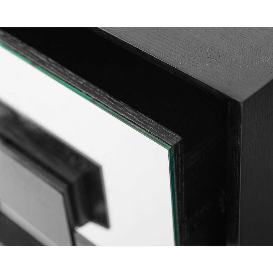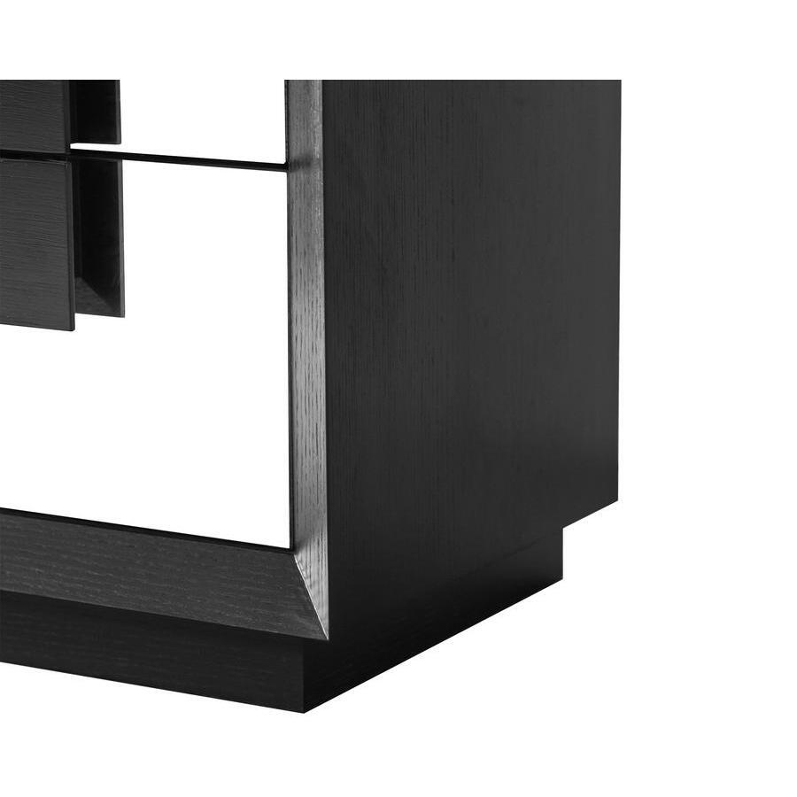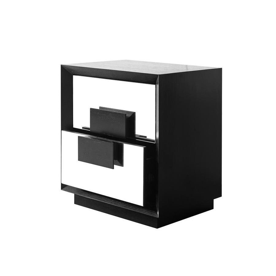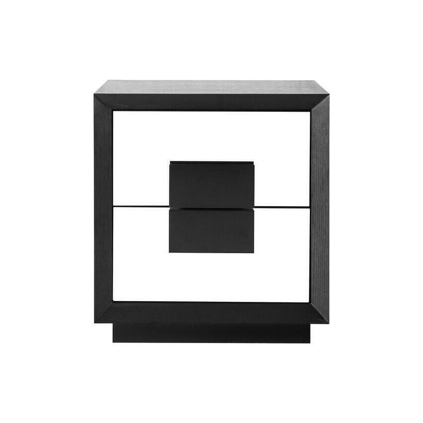 Sophistication and elegance exudes from the Etna Bedside table. Finished in a deep black wenge oak wood veneer with matching handles and a powder coated steel base for stability. The mirror fronted drawers add a chic design which enhances the room. With ample storage you can hide away all of your bedside items leaving the bedroom looking spotless. The blending of the jet black frame and mirror style drawers will provide a striking contrast to any interior. Please note that metal items are intended to have a rustic appearance that may include spotting and variances in tone and lustre.