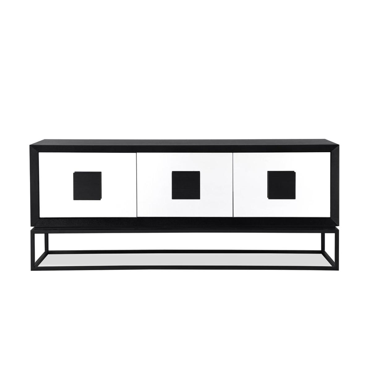 Make relaxing in front of the television a glamorous occasion with the Liang and Eimil ETNA media sideboard. This exceptional piece of furniture will undoubtedly uplift your living space, providing. View More. Make relaxing in front of the television a glamorous occasion with the Liang and Eimil ETNA media sideboard. This exceptional piece of furniture will undoubtedly uplift your living space, providing stylish yet practical storage space for your belongings. With its sleek black ash body and minimalist square handles in the same material, this beautiful piece offers functional charm and elegance. Its coated steel base supports the chic top which features a trio of doors fashioned in dazzling reflective mirrors. Giving off a warming rustic air of grace, this high-end sideboard will provide your home with a welcome atmosphere of chic refinement.