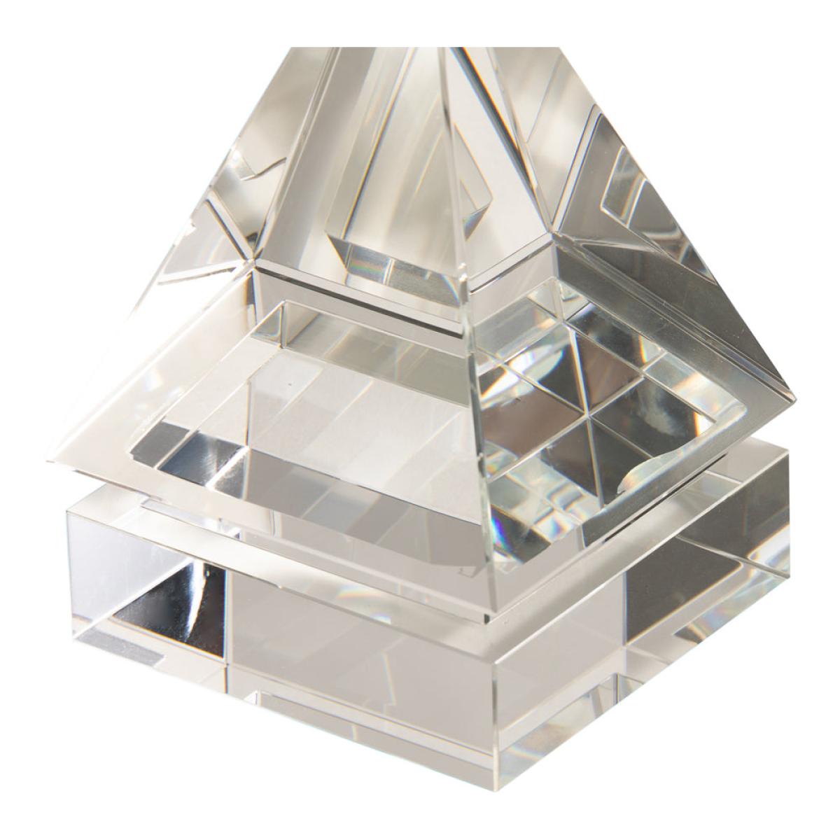 Finish your shelves in the most elegant way with the Liang & Eimil Gable Decor. This bookend is a beautiful, crystalline structure that reflects and refracts the light through its clear sides. There’s a strong, square base to support the rising pyramid that forms the bulk of the piece, a less-than-typical shape that adds intriguing angles and structure to capture your eye. It’s full of visual interest and effortless sophistication, but it will also prove a sturdy way to mark the end of a shelf and frame and protect the books or ornaments within it. Measuring: 16cm x 10cm x 10cm. Dimensions: H: 16 x W: 10 x D: 10 cm Materials: Crystal Assembly Required: No