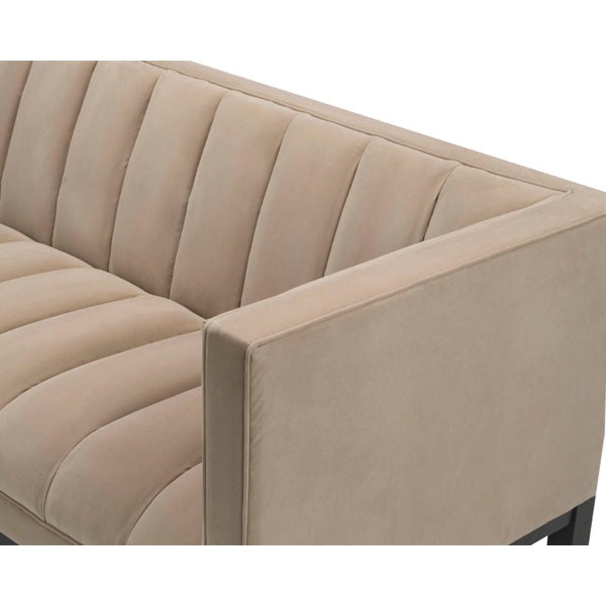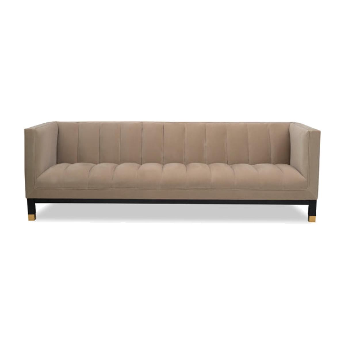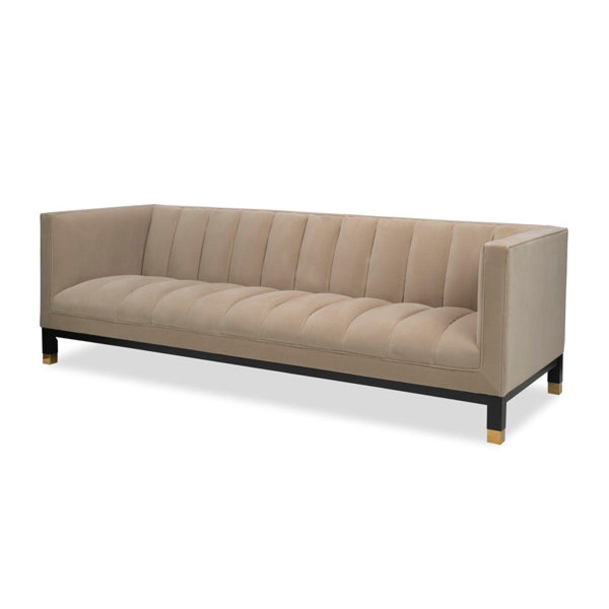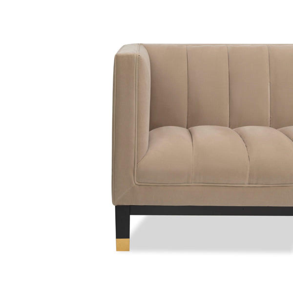 A solid wood base and velvet upholstery makes the Gamal Sofa a special addition to any living room. Perfect for making a statement in your home, this piece benefits from a solid birch base with a polished gold caps. Its velvet upholstery completes the look perfectly. It is not only the soft grey velvet that ignites a sense of comfort, it’s also the exquisite channelled detailing on the sofa.