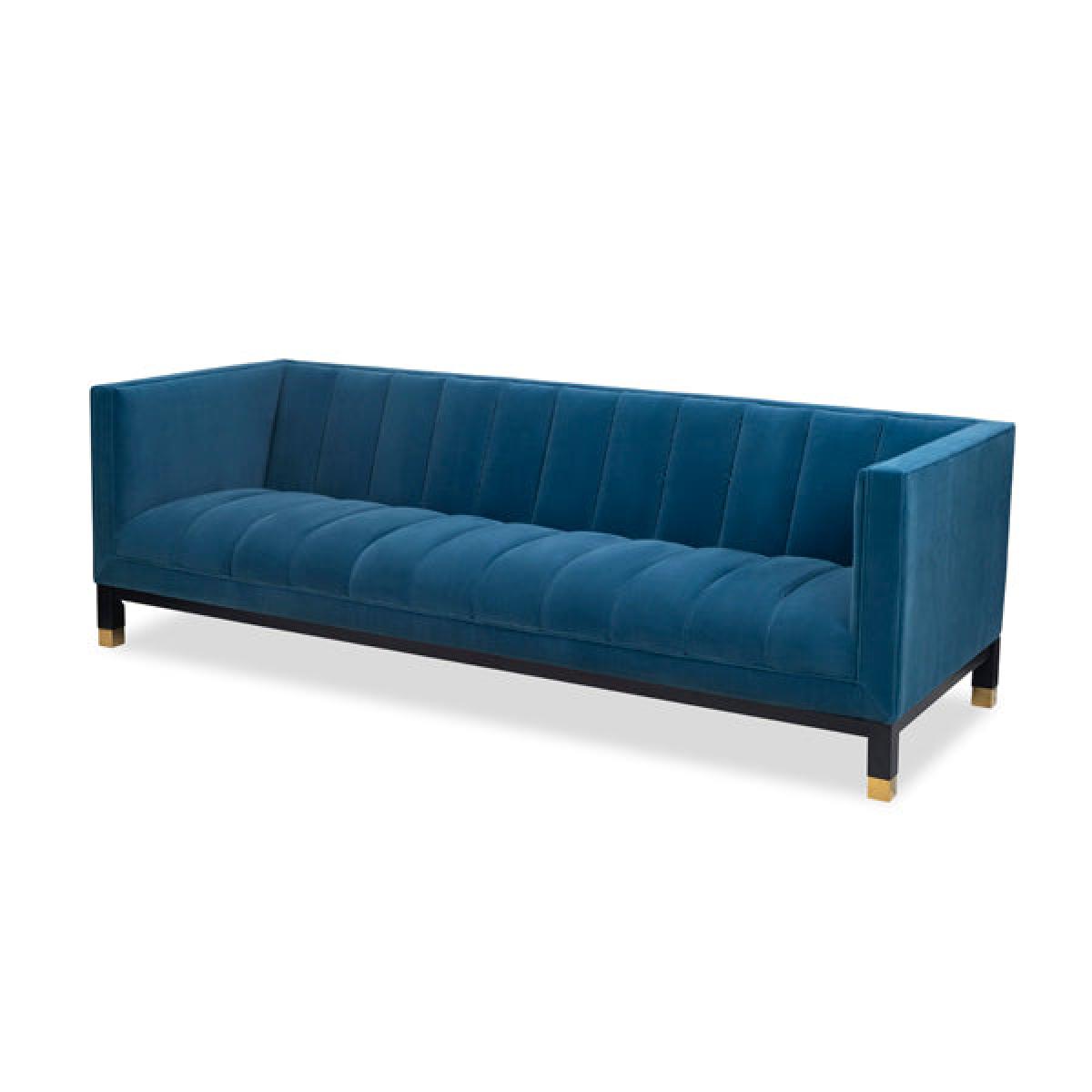 A solid wood base and velvet upholstery makes the Gamal Sofa a special addition to any living room. Perfect for making a statement in your home, this piece benefits from a solid birch base with a polished gold caps. Its velvet upholstery completes the look perfectly. It is not only the soft grey velvet that ignites a sense of comfort, it’s also the exquisite channelled detailing on the sofa.